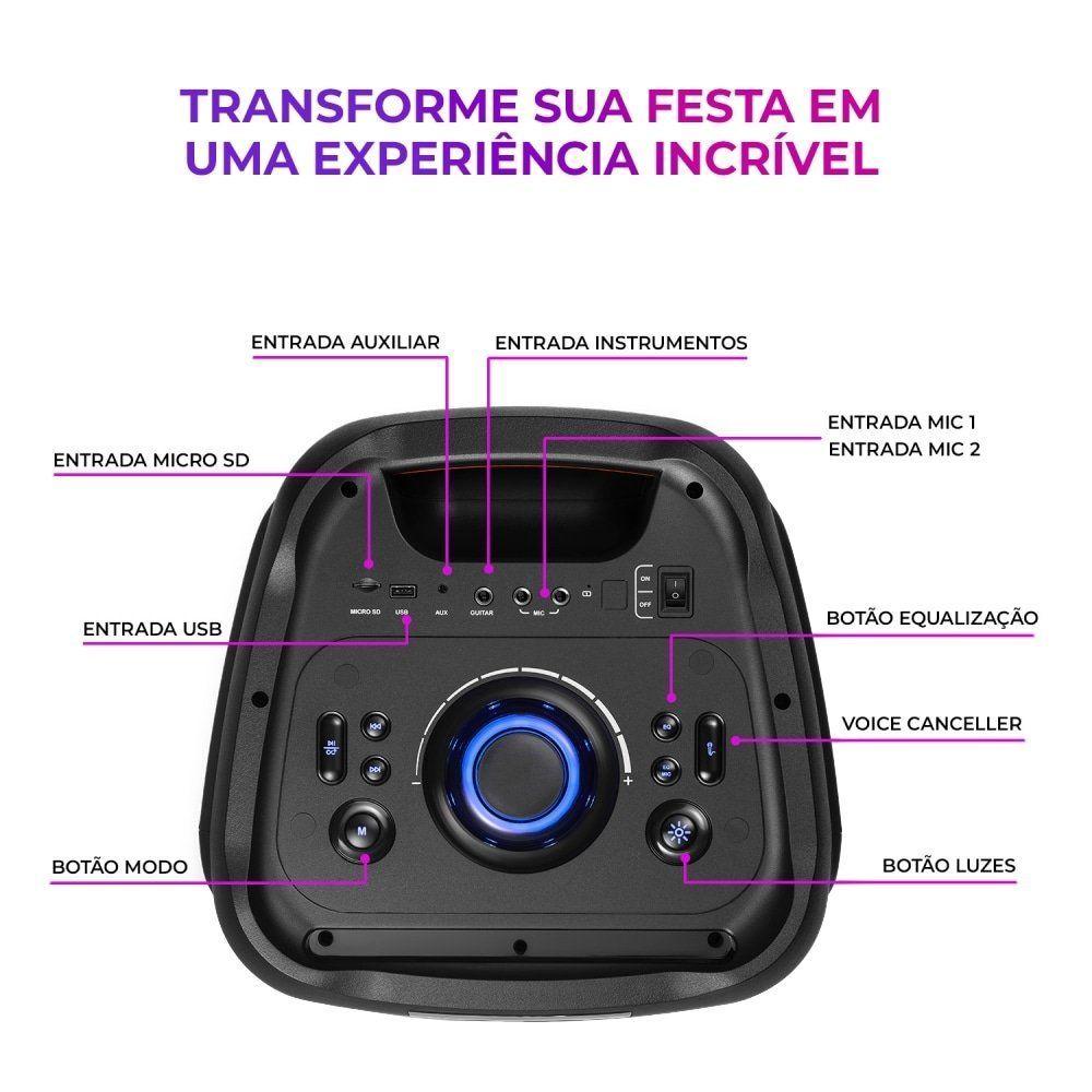 Caixa Amplificada Aiwa Party Box Pb06, 200w, Bluetooth, Rgb, Aws-pb-06 Preto Bivolt