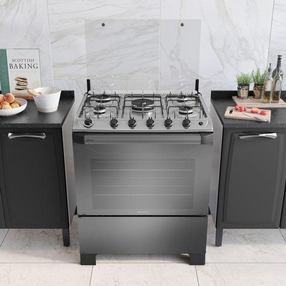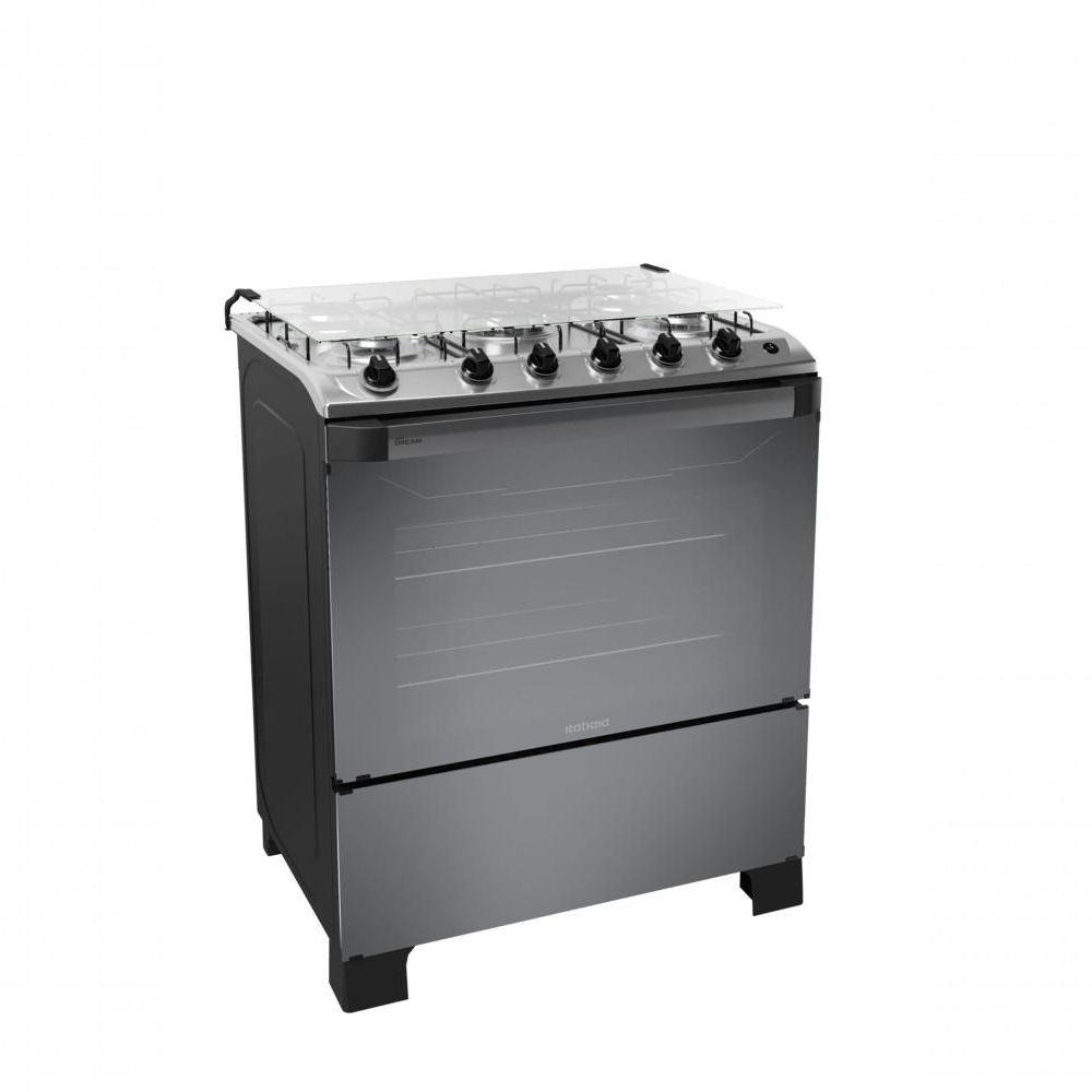 Fogão New Dream 5 Bocas Prata Bivolt Mais Potência, Espaço e Estilo: Fogão Itatiaia New Dream 5 BocasSe a sua cozinha é o coração da casa, o Fogão Itatiaia New Dream 5 bocas é o centro das atenções. Com queimador tripla chama, forno super espaçoso de 101 litros e design moderno, ele foi feito para quem adora preparar receitas elaboradas com agilidade e eficiência.A mesa em aço inox facilita a limpeza e resiste ao uso intenso do dia a dia, enquanto o sistema Full Glass na porta do forno proporciona um visual elegante e maior visibilidade do preparo. As grades duplas em aço com design reforçado garantem mais estabilidade e durante o uso.O acendimento automático traz praticidade, e o puxador em alumínio escovado adiciona um toque sofisticado ao conjunto.Diferenciais do Produto:5 queimadores, incluindo 1 tripla chama: mais potência e rapidez no preparoForno com 101 litros de capacidade e limpeza Limpa FácilMesa em aço inox: durabilidade e praticidade na limpezaAcendimento automáticoSistema Full Glass: frente do forno toda em vidro temperadoGrades duplas reforçadas em açoPuxador em alumínio escovadoDesign moderno, ideal para cozinhas espaçosasEspecificações Técnicas:Marca: ItatiaiaModelo: New Dream 5 BocasCor: Reflecta FumêDimensões (A x L x P): 96 cm x 77 cm x 62 cm de bocas: 5 queimadores (inclui 1 tripla chama)Tipo de acendimento: AutomáticoCapacidade do forno: 101 litrosMesa: Aço inoxTrempes: Grades duplas em aço com design reforçadoFrente do forno: Full Glass (vidro temperado)Puxador: Alumínio escovadoLimpeza do forno: Limpa FácilGarantia: 12 mesesAssistência técnica: Selo do Inmetro: SimAtenção:As configurações do seu monitor ou dispositivo podem alterar a tonalidade real do produto.Não faturamos para CNPJ.