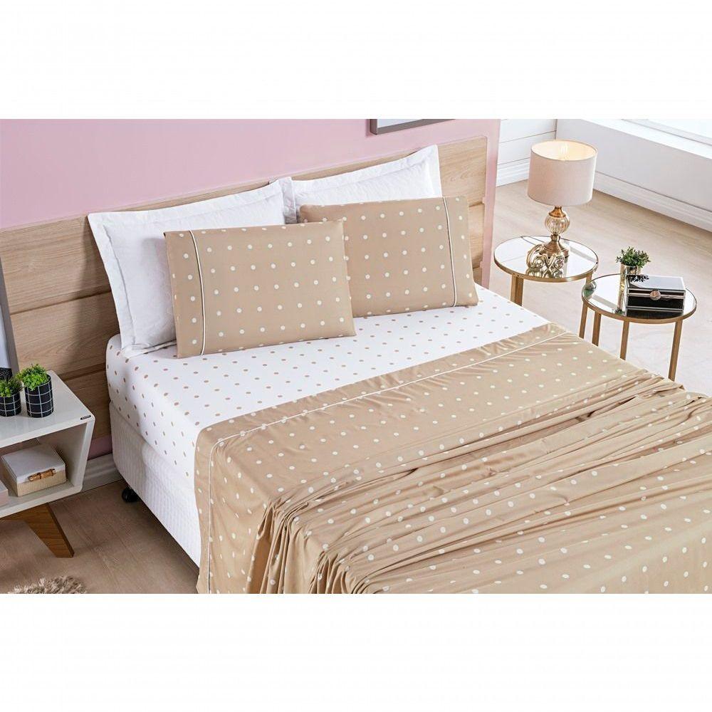 Cobre Leito + Jogo De Cama 200 Fios Petit Poá King 07 Peças 100% Poliéster - Caqui