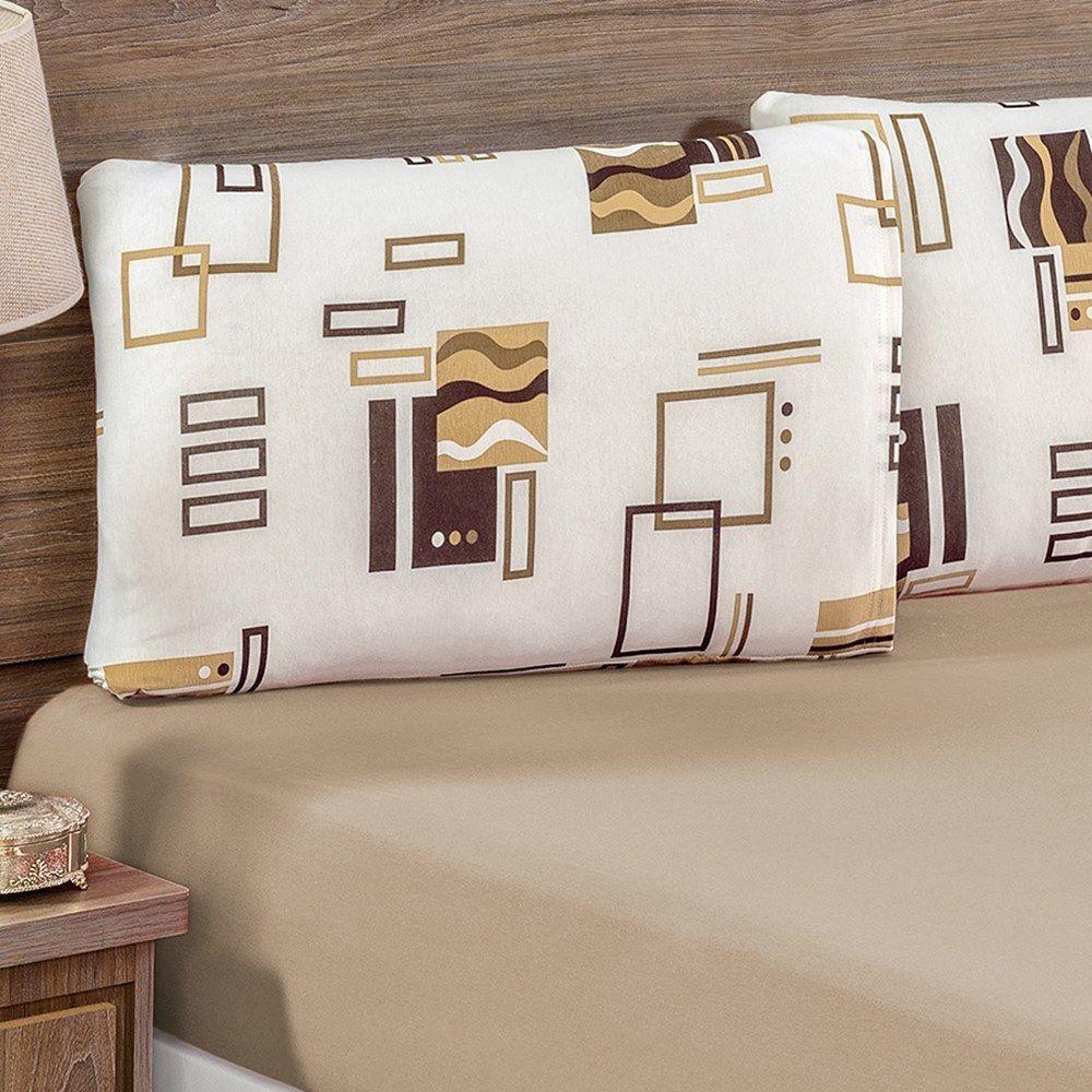 Edredom 2,60m X 2,40m + Jogo De Cama Malha Quality King 04 Peças 100% Algodão - Avelã
