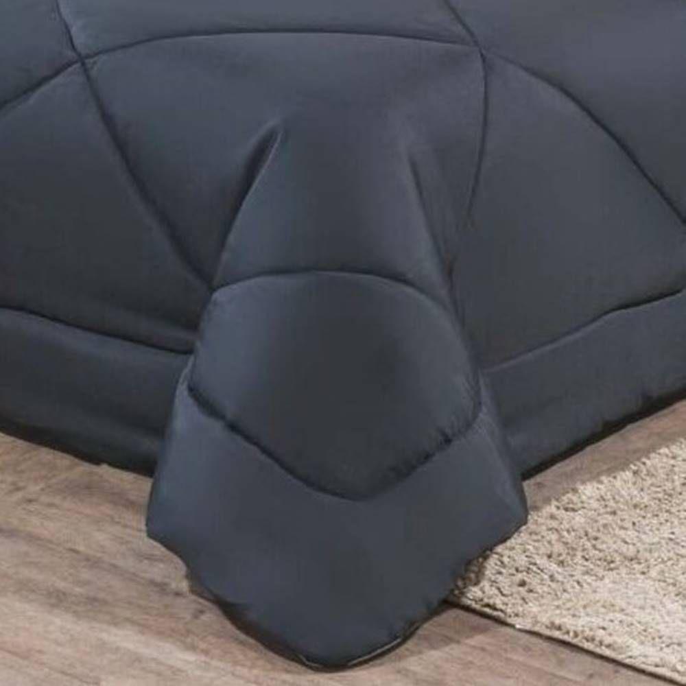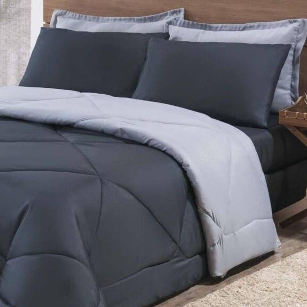 Kit Edredom + Jogo De Lençol Aconchego Look House Casal Padrão 6 Peças 80% Algodão , 20% Poliéster- Preto- Cinza