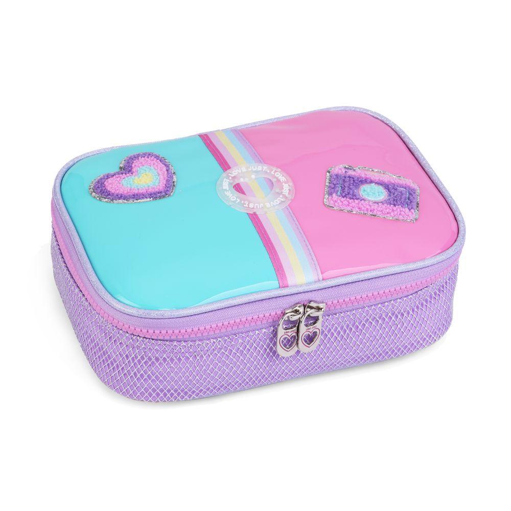 Kit Mochila De Rodinhas + Lancheira + Estojo Just Love Rainbow Chaveiro DenlexKit Mochila de Rodinhas + Lancheira + Estojo Just Love Rainbow Chaveiro Denlex -A mochila de rodinhas Just Love Denlex possui aproximadamente 48 cm de altura, 32 cm de largura e 15 cm de profundidade, estrutura reforçada, alça retrátil e rodas resistentes, garantindo mobilidade e conforto até para os dias mais cheios. Seu compartimento interno é espaçoso e ideal para cadernos, livros e materiais escolares, com bolsos laterais para garrafinha e zíper de alta durabilidade.A lancheira térmica possui 22 cm de altura, 20 cm de largura e 10 cm de profundidade, perfeita para conservar os alimentos sempre frescos. O interior revestido facilita a limpeza e mantém a temperatura por mais tempo, ideal para o lanche da escola ou passeios.O estojo Just Love Denlex mede 22 cm de comprimento, 8 cm de largura e 6 cm de altura, comportando lápis, canetas, borrachas e acessórios de forma organizada. Compacto e prático, ele complementa o conjunto com charme e funcionalidade.Com materiais de alta qualidade, acabamento resistente e visual alegre, o Kit Just Love Denlex é a escolha ideal para meninas que amam estudar com estilo. Perfeito para o uso escolar, viagens ou presente, este kit oferece excelente custo-benefício e acompanha 1 Mochila de Rodinhas + 1 Lancheira Térmica + 1 Estojo.