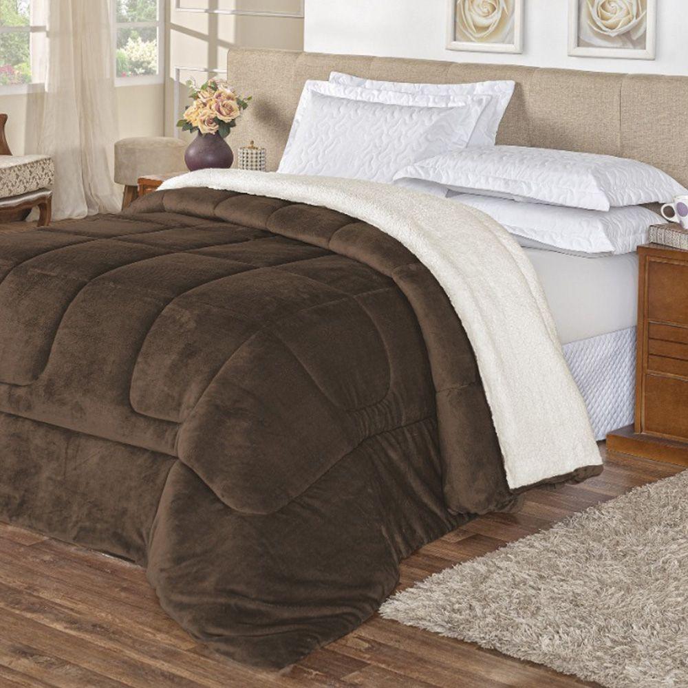 Coberdrom Casal Queen Sherpa Pele De Carneiro Everest 01 Peça - Marrom