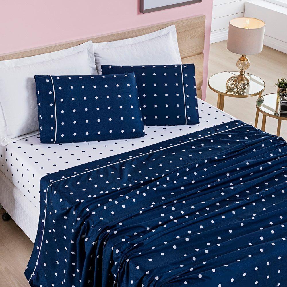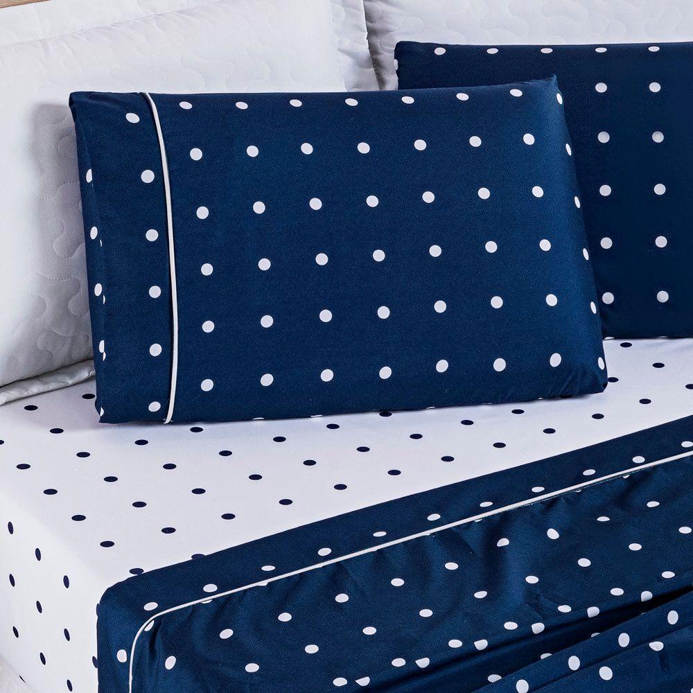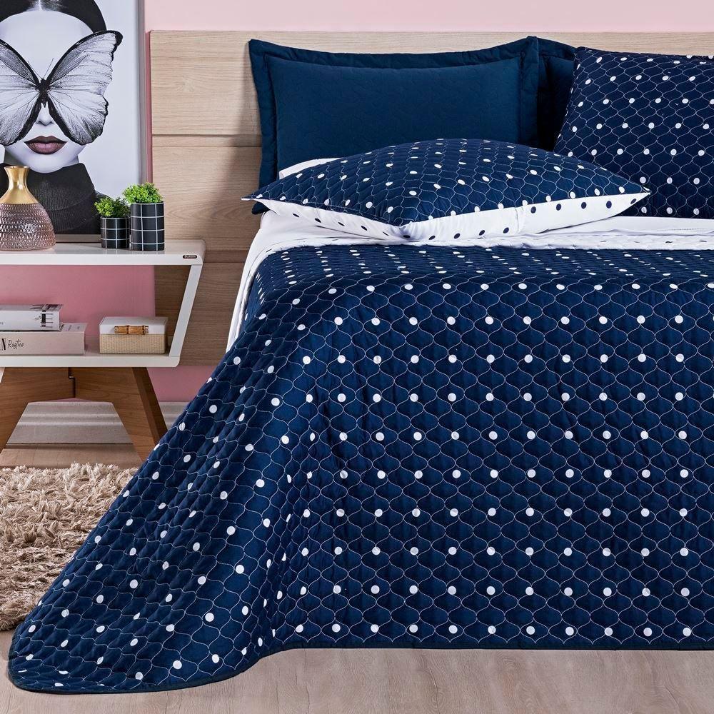 Cobre Leito + Jogo De Cama 200 Fios Petit Poá Queen 07 Peças 100% Poliéster - Marinho