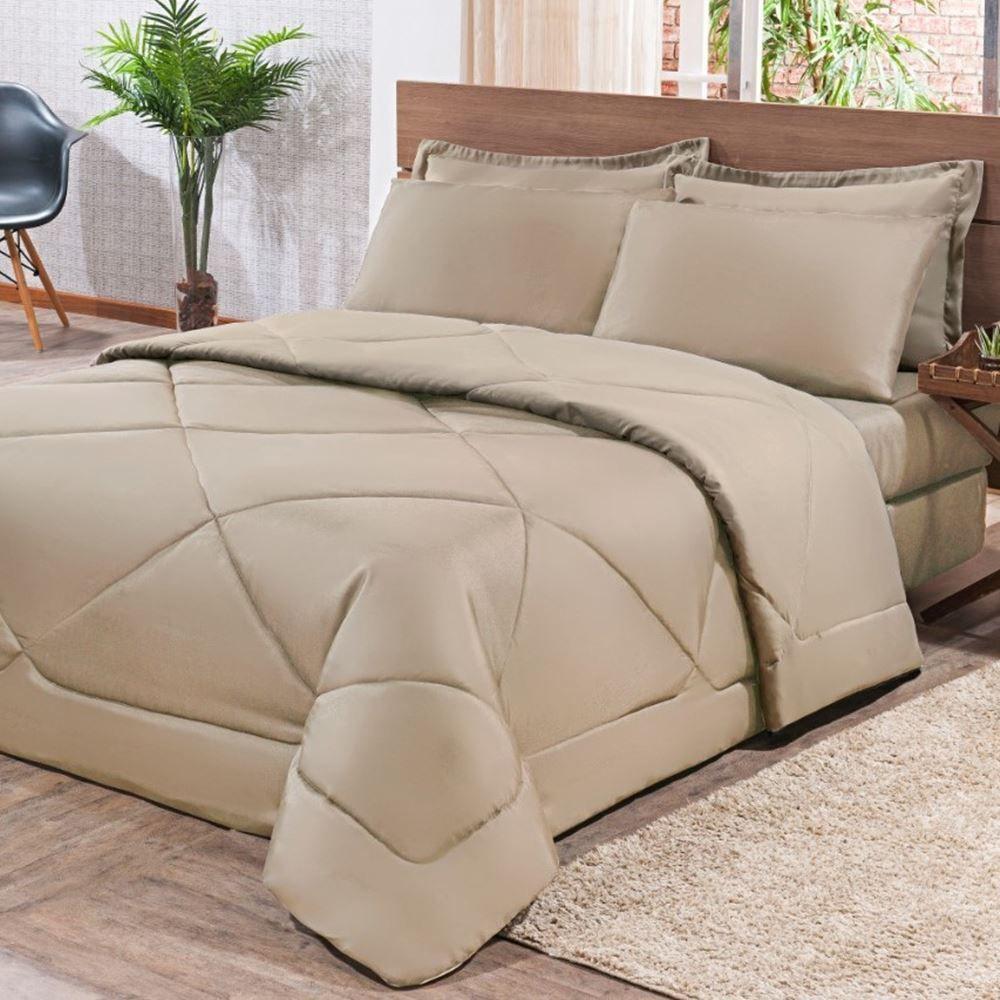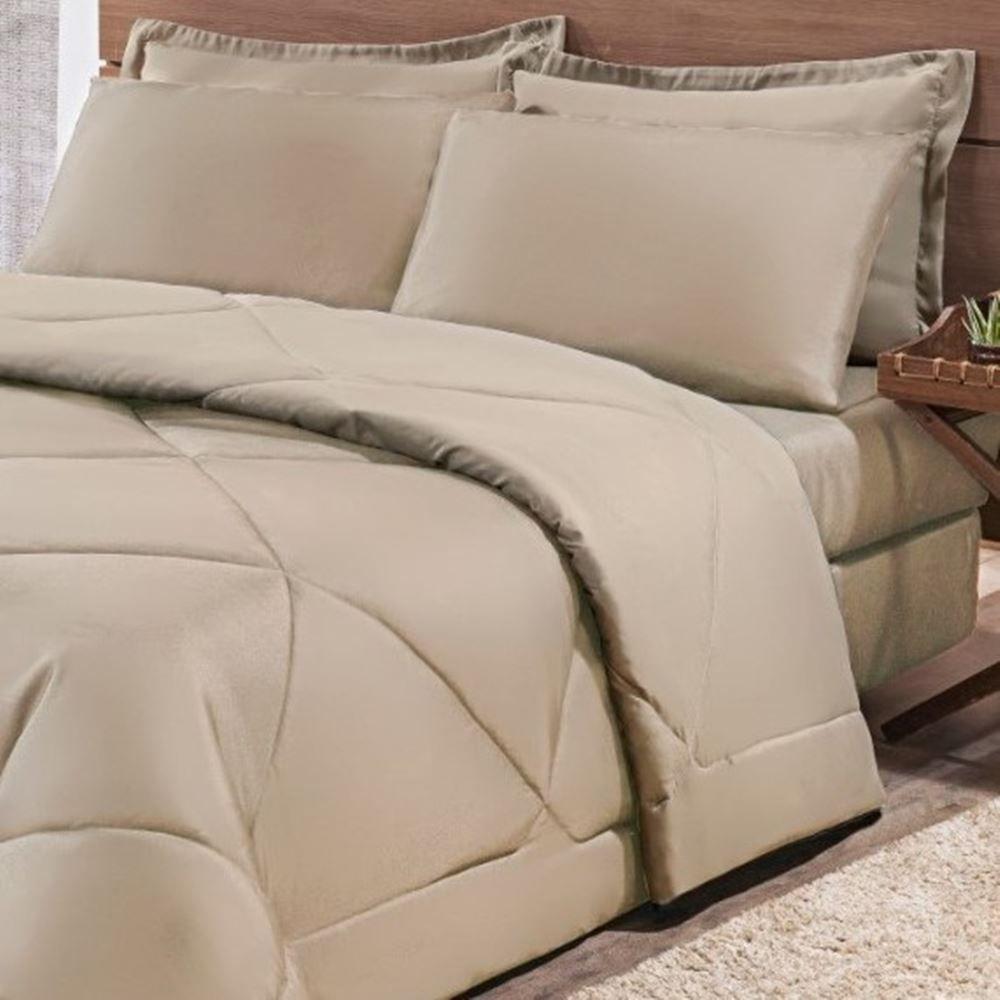 Kit Edredom + Jogo De Lençol Aconchego Look House Casal Padrão 6 Peças 80% Algodão , 20% Poliéster- Caqui