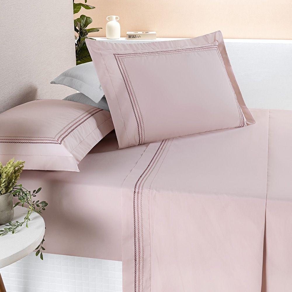 Jogo De Cama Ellos 200 Fios Queen 04 Peças 80% Algodão / 20% Poliéster - Rosa