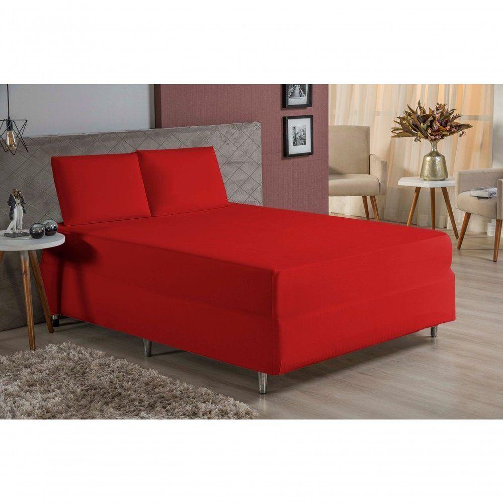 Jogo De Cama King Nobre 3 Peças Luva De Box 55cm De Altura Malha 100% Algodão - Vermelho