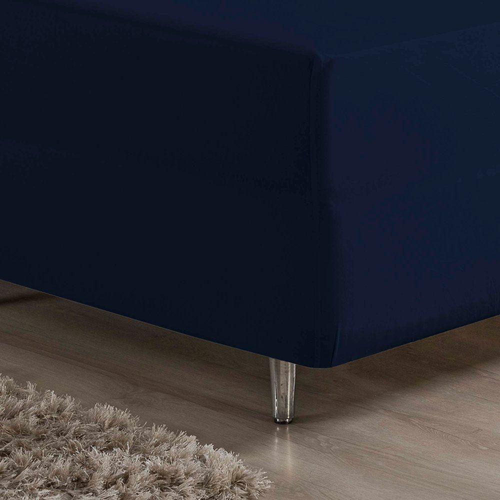 Jogo De Cama Queen Nobre 3 Peças Luva De Box 55cm De Altura Malha 100% Algodão - Azul-marinho