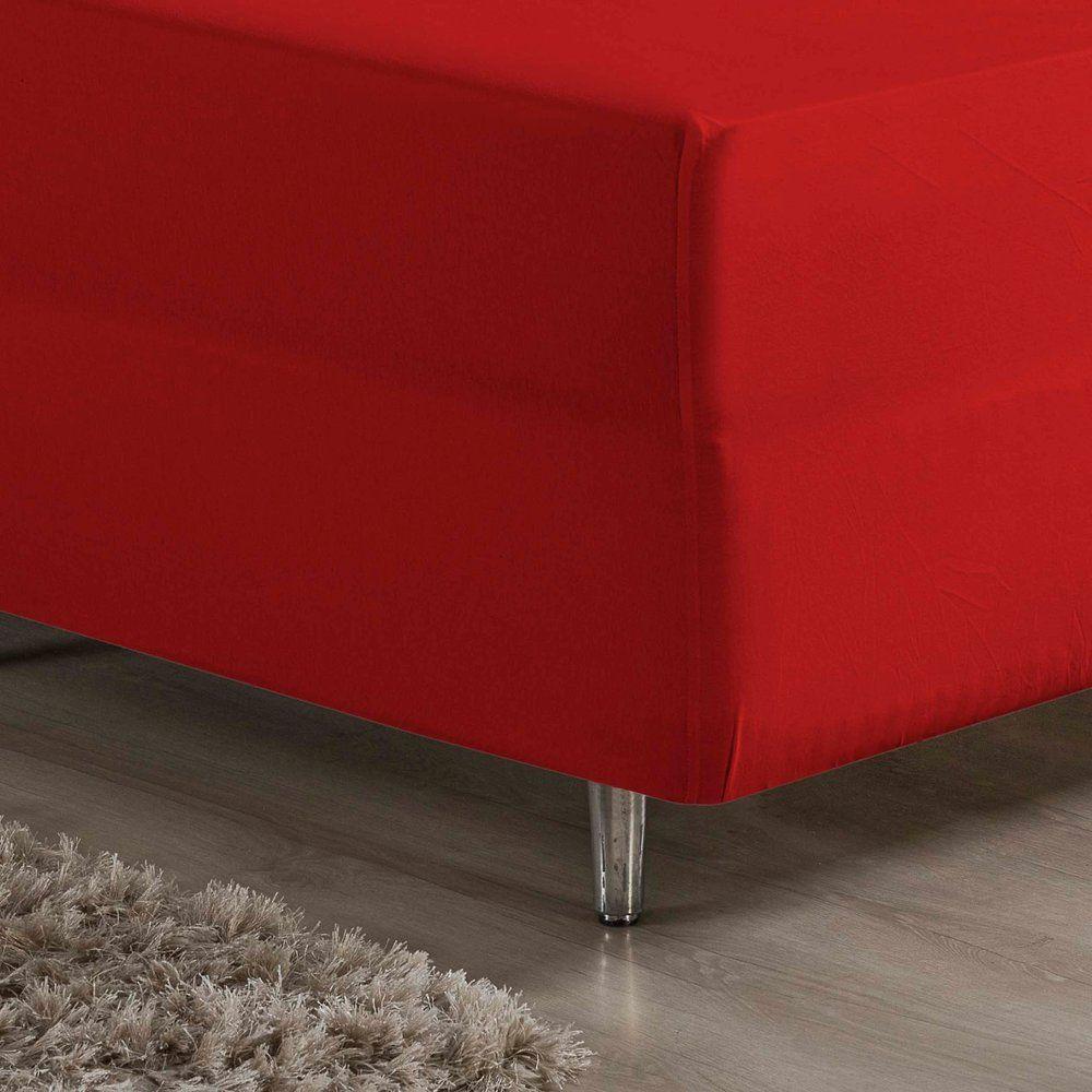 Jogo De Cama Queen Nobre 3 Peças Luva De Box 55cm De Altura Malha 100% Algodão - Vermelho