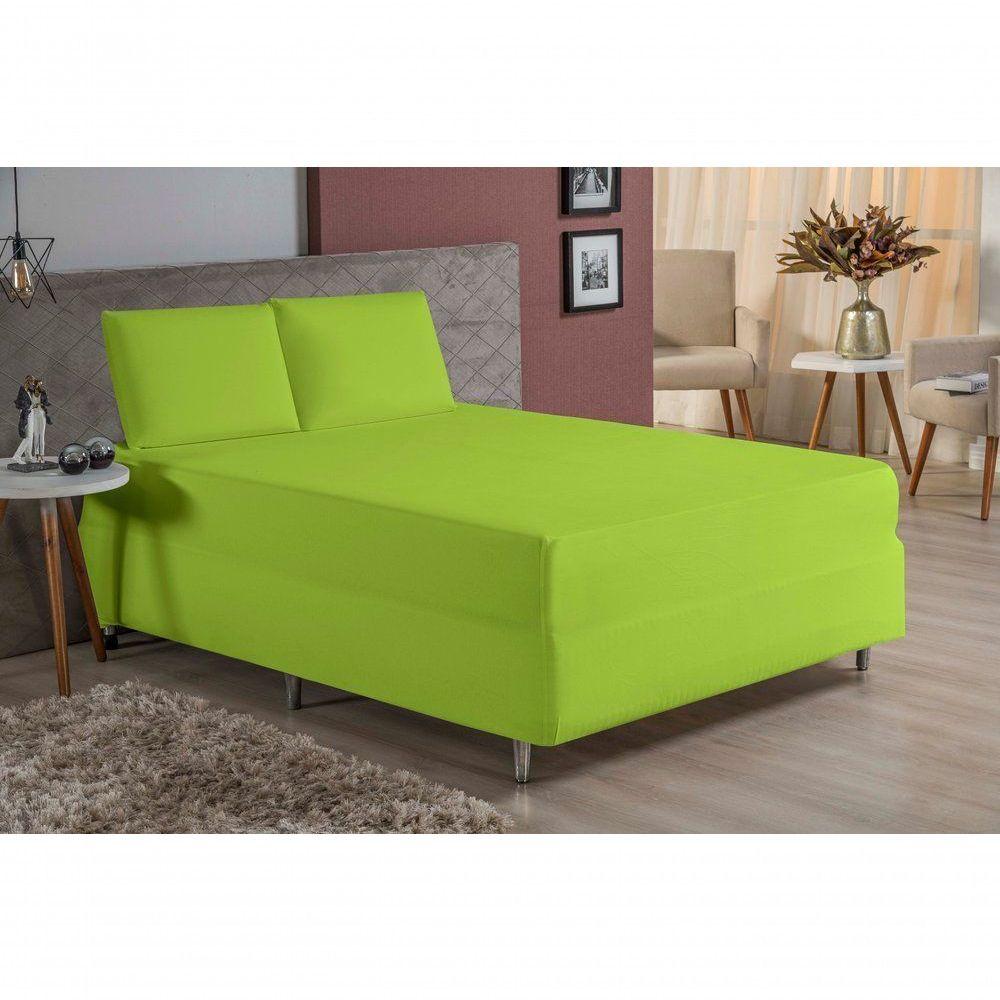 Jogo De Cama Queen Nobre 3 Peças Luva De Box 55cm De Altura Malha 100% Algodão - Pistache