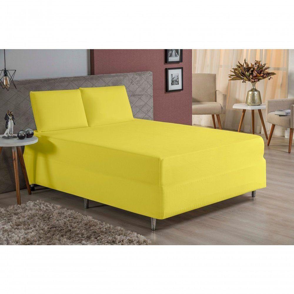 Jogo De Cama Queen Nobre 3 Peças Luva De Box 55cm De Altura Malha 100% Algodão - Amarelo