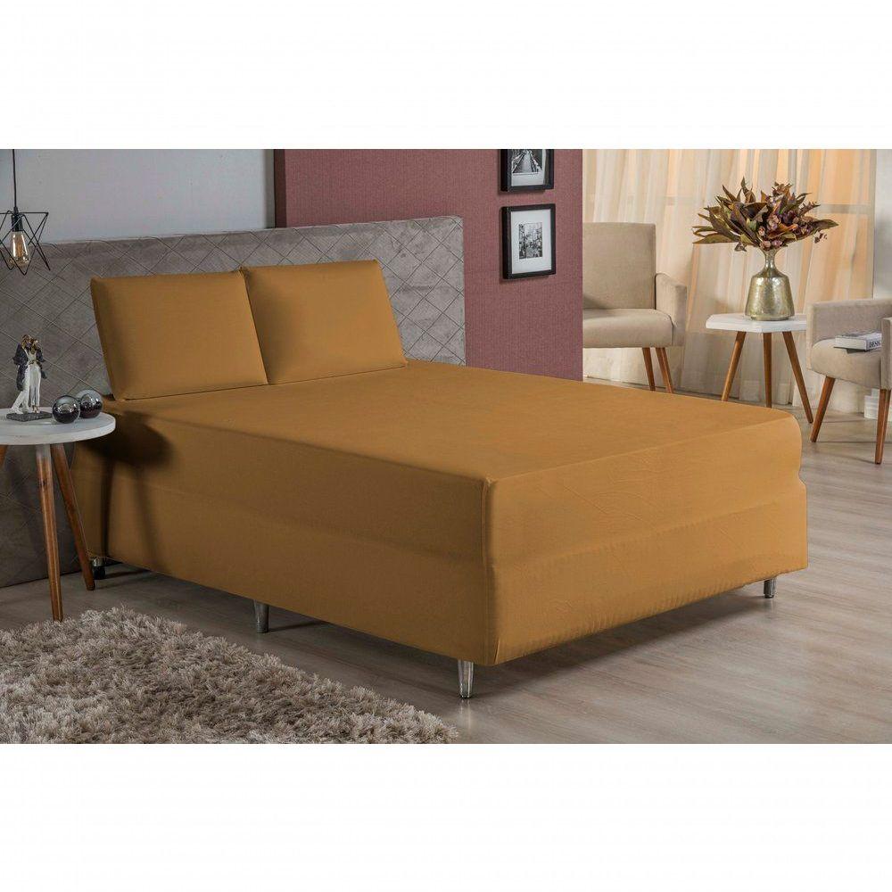 Jogo De Cama Queen Nobre 3 Peças Luva De Box 55cm De Altura Malha 100% Algodão - Cobre