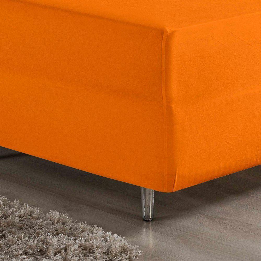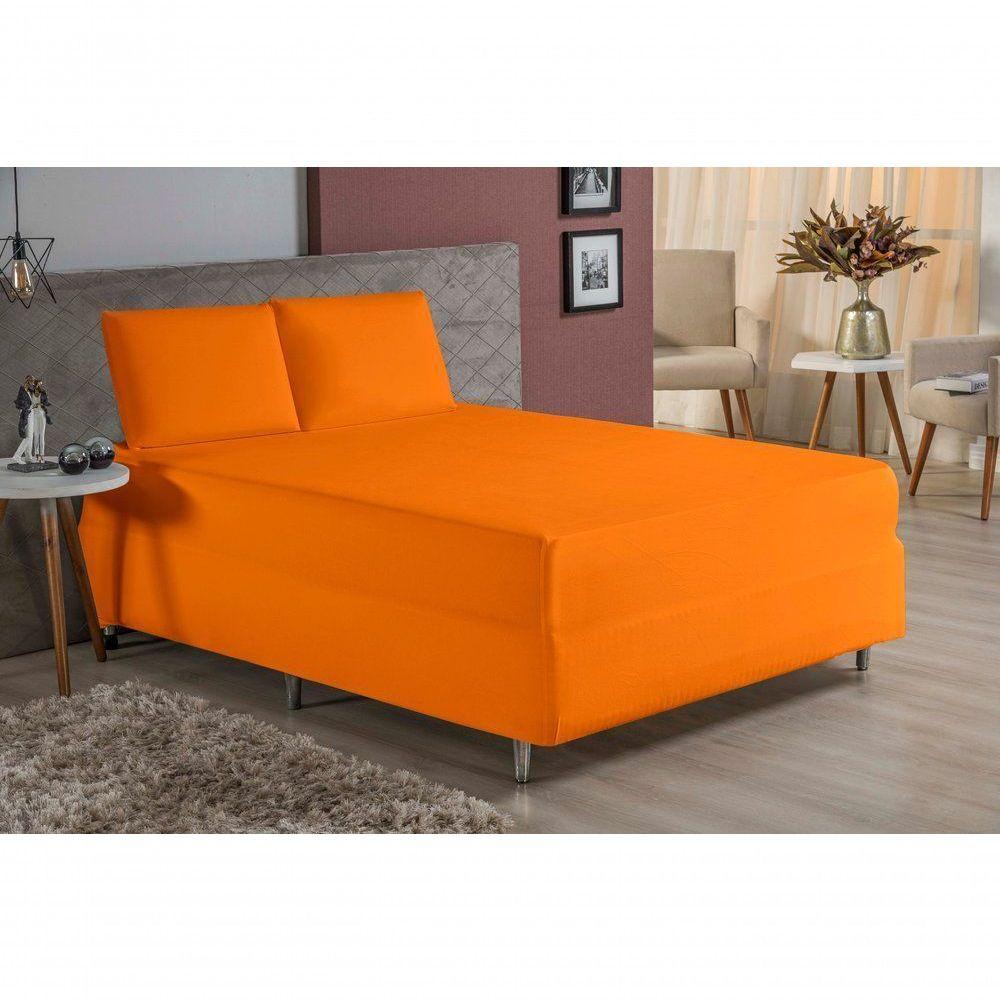 Jogo De Cama Queen Nobre 3 Peças Luva De Box 55cm De Altura Malha 100% Algodão - Laranja