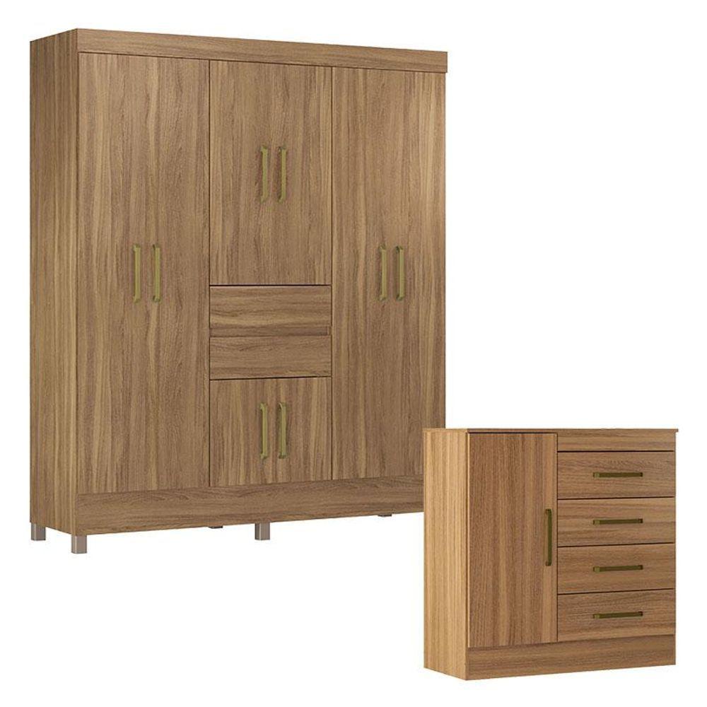Cômoda Montevidéu E Guarda Roupa Casal Munique Amêndola Touch - Demóbile