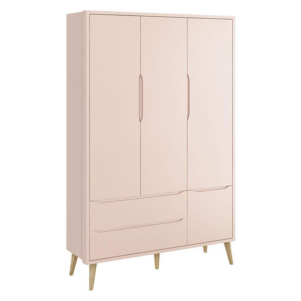 Guarda Roupa Infantil Theo 3 Portas Rosa Com Pés Madeira Natural - Reller