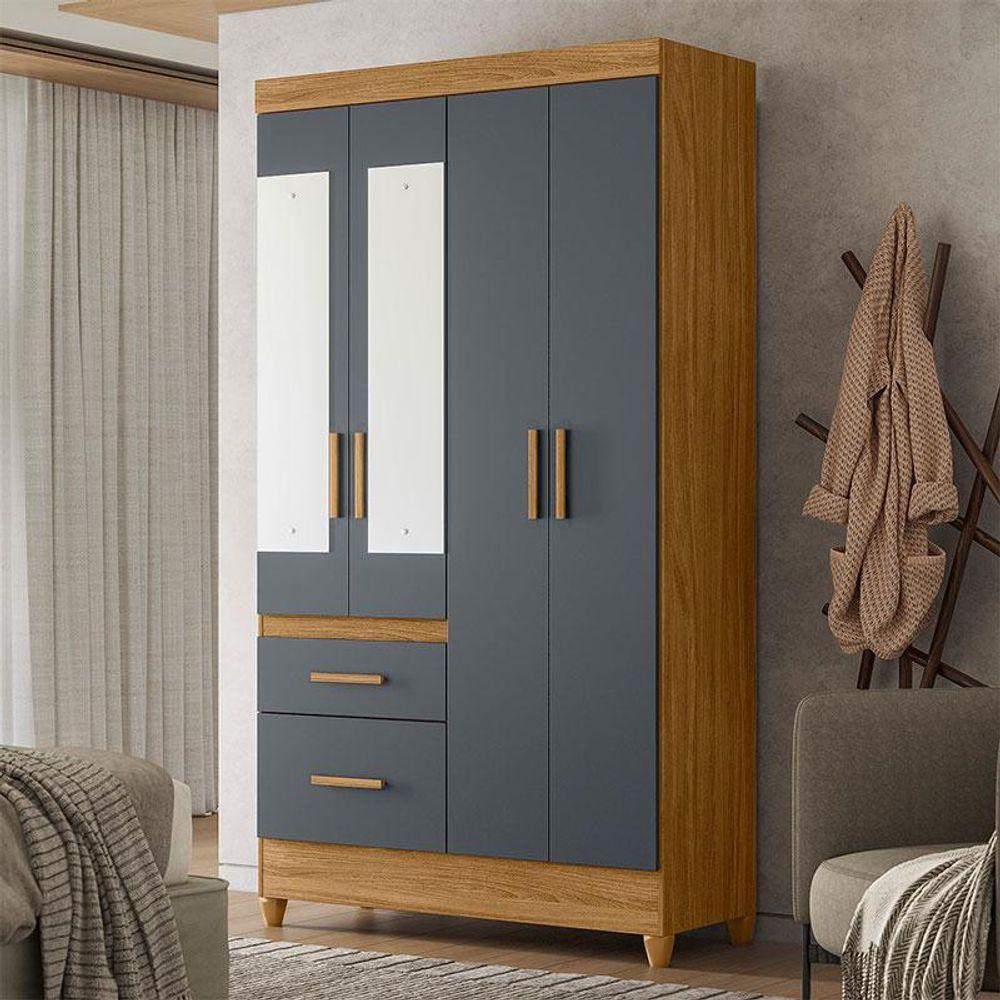 Guarda Roupa Solteiro Ambiente Madri 4 Portas Freijó Cinza Com Espelho - Moval