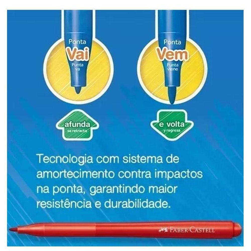 Canetinha Hidrográfica Ponta Vai E Vem 150124vvzf 24 Cores - Faber CastellCanetinha Hidrográfica Ponta Vai e Vem 150124VVZF 24 Cores - Faber CastellChegou a hora de soltar a criatividade e transformar as ideias em arte com a Canetinha Hidrográfica Ponta Vai e Vem 150124VVZF 24 Cores da Faber Castell. Desenvolvida com tecnologia inovadora, sua ponta vai e vem é resistente à pressão, garantindo maior durabilidade e segurança para os pequenos artistas, não perca mais tempo e aproveite!Características técnicas:- Material da estrutura em resinas termoplásticas, corantes, umectantes fibra e molas de aço inoxidável- Formato redondo- Possui 24 cores vivas- Ponta possui sistema de amortecimento de vai e vem- Espaço para colocar nome- Tinta lavável na maioria dos tecidos- Produto atóxico- Design modernoDimensões: Altura: 18 cm Largura: 27 cm Profundidade: 1 cmInformações importantes:- Imagens meramente ilustrativa, pode ter alteração de cor.- Toda mercadoria segue segurada contra qualquer sinistro, em caso de anormalidade, recuse.- As caixas ou pacotes possuem identificação com o nome, cidade e quantidades de volumes relativos à compra para conferencia do recebedor.