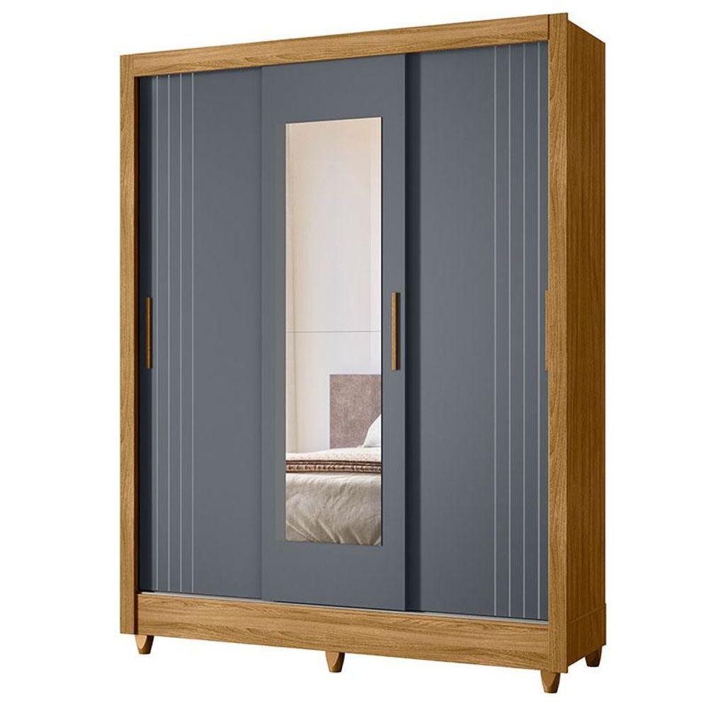 Guarda Roupa Casal Bolívia 3 Portas Freijó Cinza Com Espelho - Moval