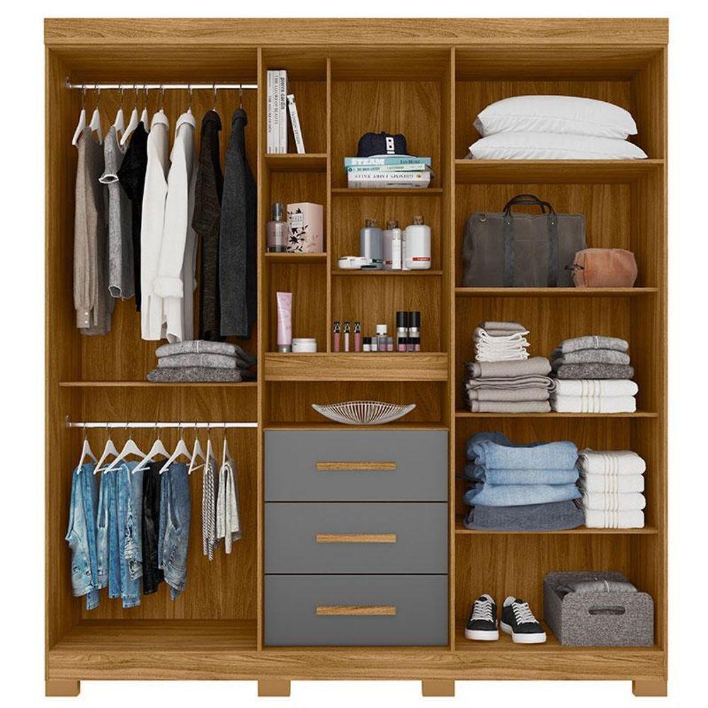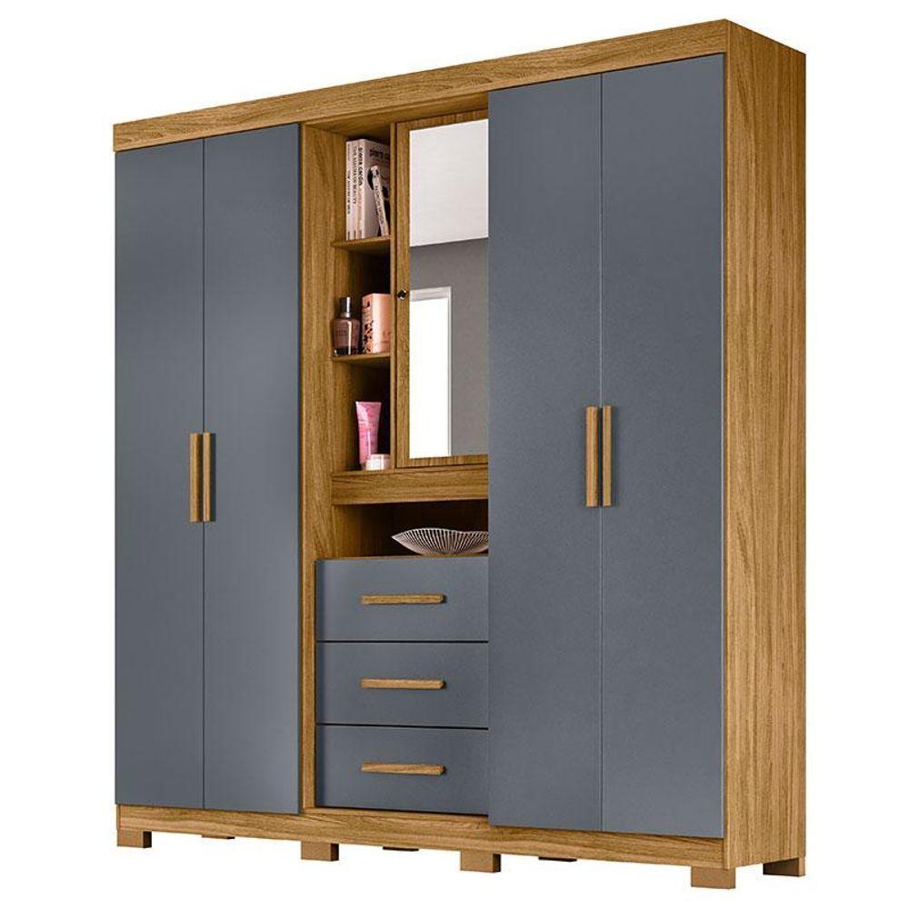 Guarda Roupa Solteiro Ambiente Eldorado 5 Portas Freijó Cinza Com Espelho - Moval