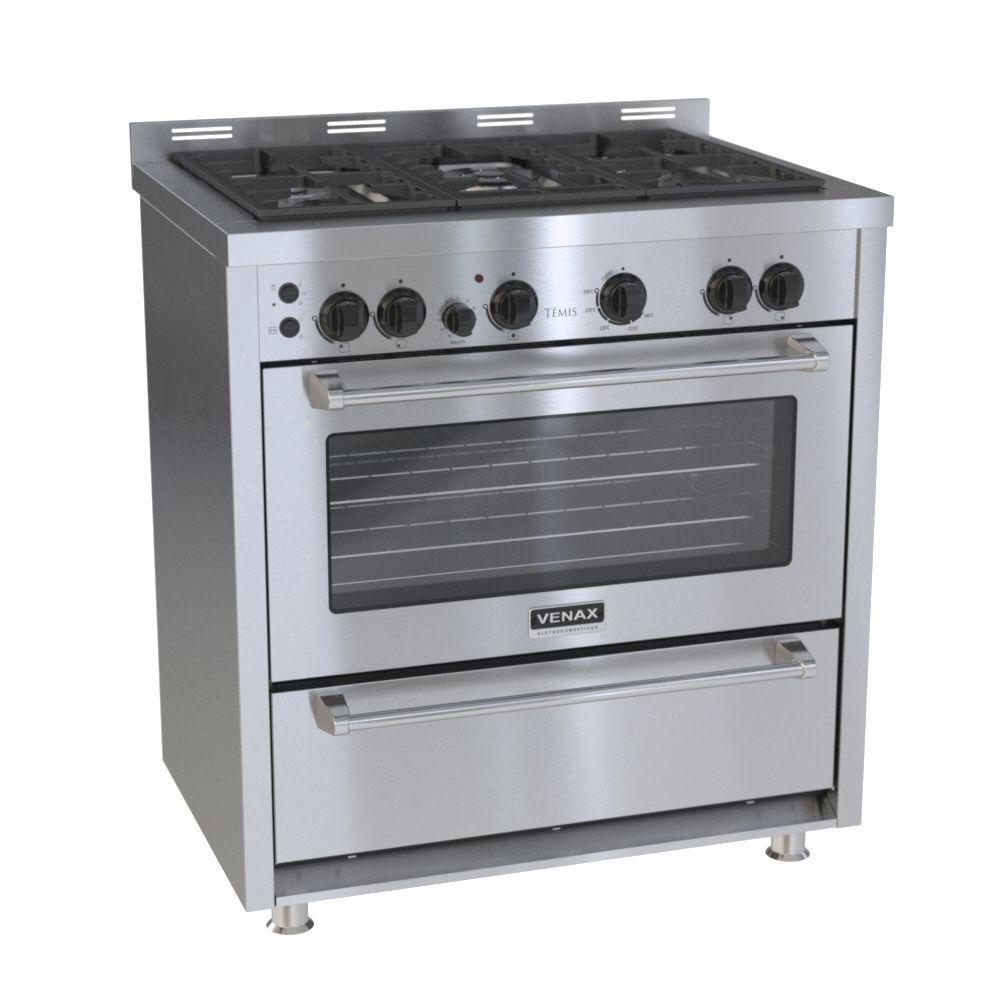 Fogão 5 Bocas Venax Temis A Gás Mesa De Inox 110VOs fogões a gás Venax Temis trazem sofisticação e praticidade com seu acendimento automático. Seus queimadores de alta performance permitem que você cozinhe com mais eficiência. Sua cozinha merece mais design e qualidade!Características:Marca: VenaxModelo: TemisRef.: 29064Cor: InoxVoltagem: 127VFrequência: 60HzClassificação Energética: ATipo: Fogão de PisoVolume do Forno: 88,3LAcendimento: AutomáticoQueimadores: 1 Tripla chama, 1 Grande e 3 MédiosTrempe dos Queimadores: Dupla em ferro fundido esmaltadaMesa dos Queimadores: Aço inox 304 escovadoBotões: RemovíveisVálvula de : SimLuz no Forno: SimPrateleiras do Forno: Duas auto deslizantesRevestimento do Forno: Esmalte Easy CleanTemperatura: 5 posições, de 180°C até 290°CFunção Grill: SimTimer Grill: SimTimer Gás: NãoEspeto Giratório: 2 espetos removíveisBandeja Coletora de Resíduos: SimPorta Removível: SimPorta do Forno: Aço inox 304 escovado + Visor em vidroVidro Duplo na Porta: SimPuxador da Porta: Aço cromadoEstufa: MóvelPuxador da Estufa: Aço cromadoEntrada de Gás: Uma entrada (lado esquerdo, visto de frente)Cores das Laterais: Aço inox 304 escovadoAlimentação: Gás GLP (A conversão para Gás Natural não é coberta pela garantia)Etiquetas: ENCE e CONPETPotência do Grill: 1250WPotência do Queimador do Forno: 3,30kWPotência dos Queimadores da Mesa: 3,0 kW (tripla chama); 1,80 kW (queimador grande); 1,35 kW (queimador médio)Dimensões Aproximadas:Internas do Forno (LxAxP): 64,8 cm x 29 cm x 47 cmDo Produto (LxAxP): 82 cm x 94 cm x 65 cmPeso Aproximado: 50 kgImportante: Imprescindível à conferência no ato da . Em caso de anormalidade, recuse o .As imagens correspondem aos produtos apresentados, porém, são ilustrativas e podem sofrer variações de acordo com a resolução do seu monitor, iluminação ou percepção visual. Os objetos decorativos das imagens não acompanham os produtos.Todas as informações divulgadas são de responsabilidade do fabricante, podendo sofrer alterações sem aviso prévio.Garantia: 12 meses contra de fabricação, de acordo com as normas do fabricante.