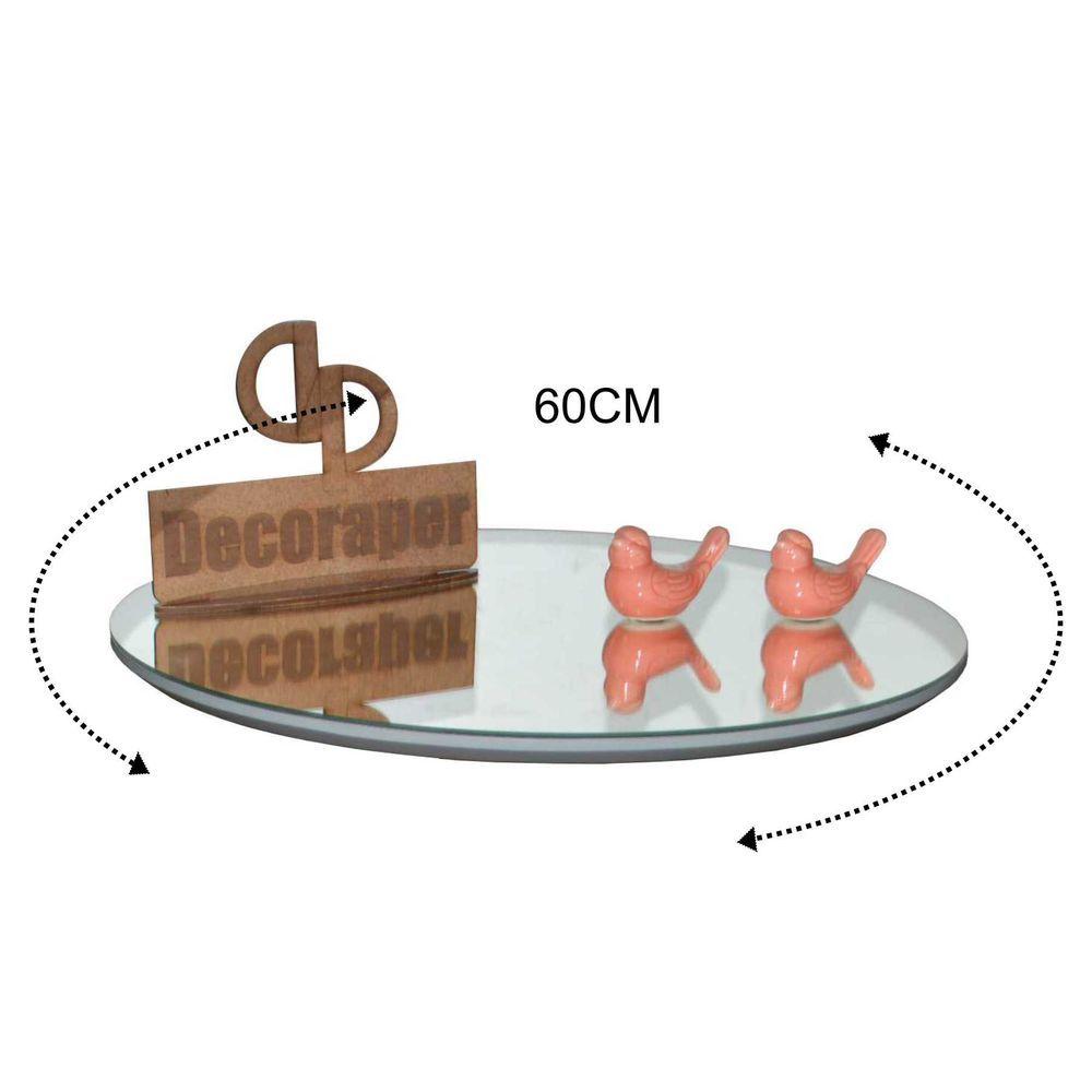 Prato Giratorio Com Espelho Sob O Tampo De 60cm Off WhitePrato Giratório Laqueado e com EspelhoO Prato Giratório Laqueado e com Espelho possui sistema giratório interno para lhe proporcionar mais conforto e praticidade na hora de servir, é um produto essencial para sua casa, tornando seu ambiente mais elegante e sofisticadoConta com um design diferenciado e inovadorEspecificações:-Fabricação Própria-Tampo em MDF laqueado (15mm)-Contém Espelho (3mm); após colado não é possível retirar-Base em MDF-Pezinhos de siliconeMedidas:-Diâmetro: 60cm-Diâmetro da base: 35cmLimpar com pano limpo e seco.