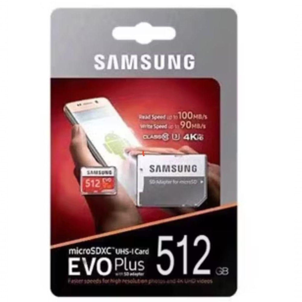 Cartao De Memoria De 512 Gb SamsungMais espaço e maior velocidade. Libere seus dispositivos com a maior capacidade e as maiores velocidades de leitura/gravação em sua classe, perfeito para vídeo UHD 4K. * Com desempenho e confiabilidade surpreendentes, o EVO Plus permite que você salve e valorize a riqueza da vida. ;Grave e reproduza vídeos UHD 4K sem falhas. Com velocidades de leitura e gravação super rápidas de até 100 MB/s e 90 MB/s, respectivamente, o EVO Plus de 512 GB permite transferir um vídeo de 3 GB para o seu notebook em apenas 38 segundos. * Tire fotos e vídeos de alta qualidade sem falhas e compartilhe todos em um instante.