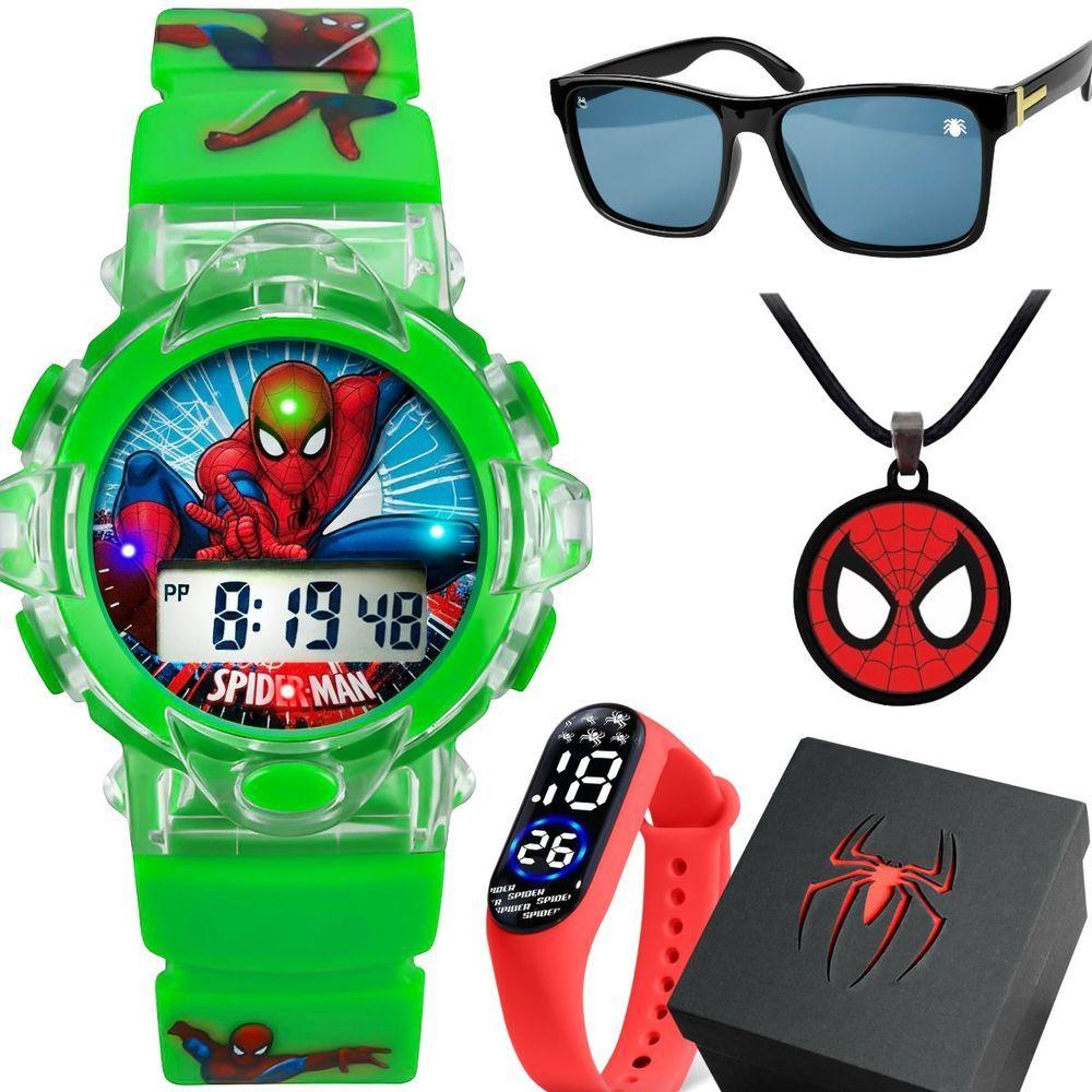 Relogio Infantil Digital Verde + Colar Oculos Crianca Menino Presente Brinde Pulseira AjustavelKit Orizom Kids Tema Homem-Aranha - Relógio Digital, Óculos de Sol, Colar e Brinde ExclusivoPensado para uso diário e para presentear com praticidade, o Kit Orizom Kids temático do Homem-Aranha é o presente ideal para o Dia das Crianças, aniversário, Black Friday e Natal. Além disso, na compra do kit, você ganha um relógio digital extra em forma de bracelete também com a temática do Homem-Aranha.Itens inclusos:- 1 Relógio infantil digital Orizom Kids, formato redondo, cor verde, temática do Homem-Aranha, pulseira ajustável de silicone- 1 Óculos de sol infantil Orizom Kids, temática do Homem-Aranha, armação em acetato, lentes pretas com proteção UV- 1 Colar infantil com pingente do Homem-Aranha- 1 Caixa premium para guardar o relógio e o colar, servindo também como embalagem de presente- Brinde: 1 relógio digital em formato de bracelete com a temática do Homem-AranhaEspecificações dos produtos:Relógio digital Orizom Kids:- Exibição digital- Caixa redonda, cor predominante verde- Pulseira de silicone ajustável- Fecho seguro e confortável- Uso recomendado: cotidiano, escola e momentos de lazer- Importante: não é à prova dáguaÓculos de sol Orizom Kids:- Armação infantil em acetato- Lentes pretas com proteção UV- Leve e confortável para uso prolongadoColar infantil com pingente do Homem-Aranha:- Corrente infantil- Pingente temáticoRelógio digital bracelete temático Homem-Aranha brinde:- Formato bracelete de vestir fácil- Uso recomendado no dia a diaRecomendações de uso e cuidados:- Ambos os relógios não são à prova dágua- Limpar os relógios com pano macio e seco- Para os óculos, utilizar pano próprio para lentes e evitar produtos abrasivos- Guardar os itens na caixa premium em local seco e arejado- Utilizar sob supervisão de um adultoConjunto completo com relógio digital, óculos com proteção UV, colar temático e caixa premium, acompanhado de brinde exclusivo. Uma escolha prática e temática para surpreender crianças em datas especiais.* Relogio Infantil Digital Verde + Colar Oculos crianca menino presente brinde pulseira ajustavel: desempenho consistente e intuitivo.* Construção de qualidade com acabamento cuidadoso.* Dimensões otimizadas para melhor uso.* Peso equilibrado para fácil manuseio.* Indicado para uso em diferentes contextos.
