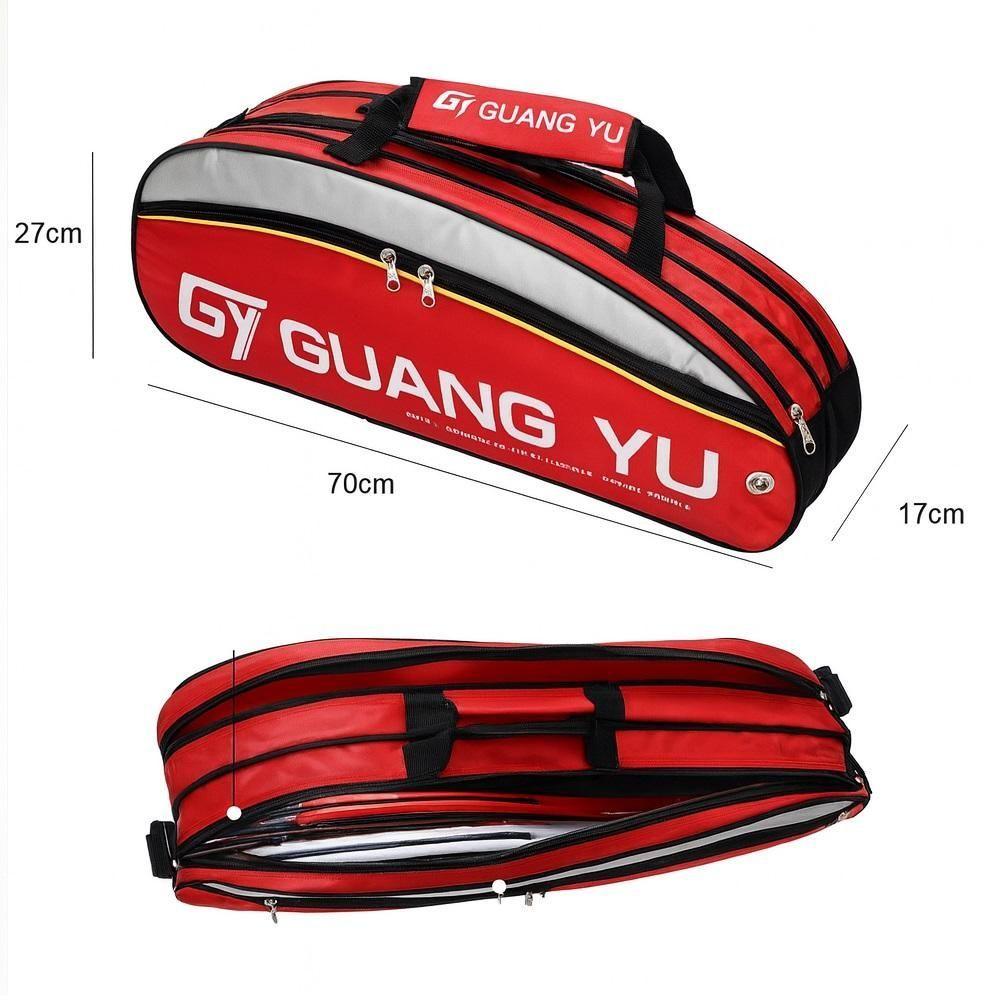 Raqueteira Mochila Tênis Esportiva Multiuso Bolsa Dupla Raquete Beach Badminton Bolsos AlçaRaqueteira GUANG YU Dupla ? Mochila Profissional Para Tênis, Badminton e Mais!Leve seus jogos a um novo nível com a Raqueteira Yaonyaex Dupla, ideal para atletas exigentes que valorizam qualidade, organização e durabilidade. Projetada para armazenar com segurança até 6 raquetes, ela é perfeita para tênis, badminton ou squash. Destaques do Produto:- 2 compartimentos principais ? Espaço amplo para até 6 raquetes, protegidas contra variações extremas de temperatura.-Compartimento exclusivo para calçados e roupas ? Evita o contato com outros itens e mantém tudo organizado. - Bolsos adicionais ? Ideal para acessórios como garrafas, squeezes, lanches, celulares e muito mais. - Alças práticas ? Alça superior e na ponta para facilitar o transporte. - Design esportivo e elegante ? Perfeita para quem treina com estilo.Ficha Técnica:Tamanho:70 x 27 x 17 cmCapacidade: Até 6 raquetesMaterial: Poliéster de alta resistênciaIndicação: Tênis, Badminton, SquashDurável, funcional e com acabamento impecável, a Raqueteira Yaonyaex é a escolha certa para quem leva o esporte a sério. Não perca tempo e garanta já a sua!* Raqueteira Mochila Tênis Esportiva Multiuso Bolsa Dupla Raquete Beach Badminton Bolsos Alça: desempenho consistente e intuitivo.* Construção de qualidade com acabamento cuidadoso.* Dimensões otimizadas para melhor uso.* Peso equilibrado para fácil manuseio.* Indicado para uso em diferentes contextos.