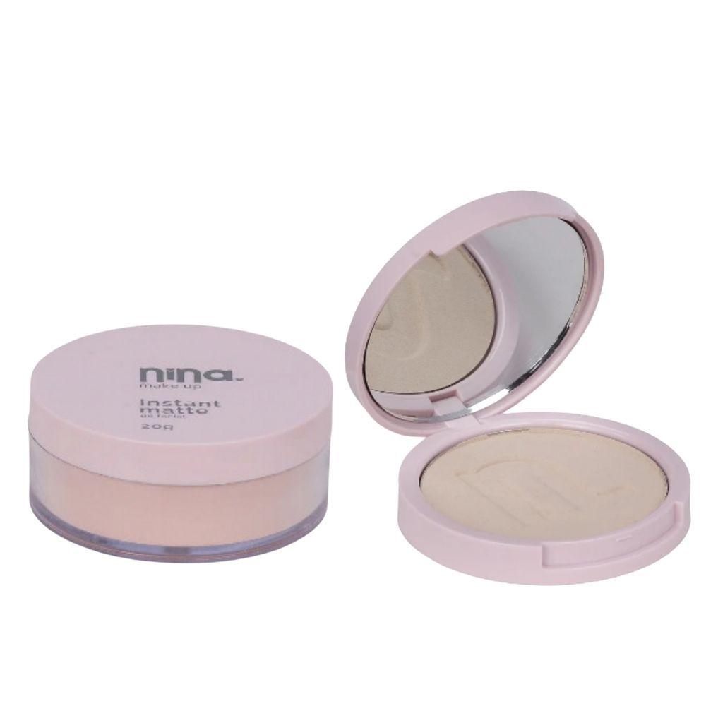 Kit Nina Makeup Pó Instant Compacto Cor 1 + Pó Solto Cor 1