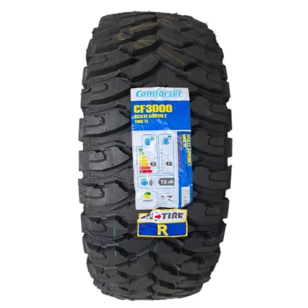 Pneu 33x12,5r18 118q Comforser Cf3000 DireitoPNEU 33X12,5R18 118Q COMFORSER CF3000 DIREITOOs pneus Comforser CF3000 MT (Mud Terrain) foram desenvolvidos com a mais alta tecnologia para que você obtenha a melhor experiência off-road. Com um desenho inovador e de alta resistência ele irá proporcionar ótima aderência nos mais diversos tipos de terrenos.ÍNDICE DE CARGA: 118 ( Kg)ÍNDICE DE VELOCIDADE: (160 Km/h)CaracterísticasPossui desenho unidirecional e sulcos profundos para aumentar a tração;Ombro com desenho reforçado para prevenir impactos de pedras;Pneu com reforço para uma maior proteção. Quantidade de pneus: 1 | Índice de carga: 118Q | UTQG: 118 | Faixa de carga: LL | Tipo de construção: Radial | Relação de aspecto: 12,5 | Largura de secção: 33 | Diâmetro da roda: 18 | É run flat: Não | Resistência ao rolamento: E | Aderência em pista molhada: E | Ruído externo: 72 | Tipo de : T | Tipo de terreno: MT