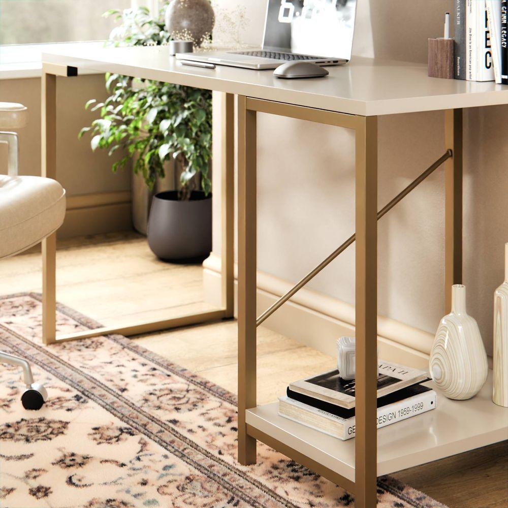 Mesa Escrivaninha Home Office Tokyo Compacta Estilo Industrial Para Computador Dourado Off