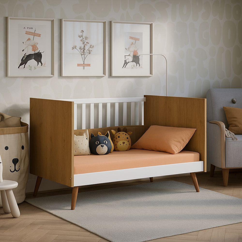 Berço Americano Retrô Vira Mini Cama Com Grade Removível FreijoO Berço Americano Retro relembra uma era passada, harmonizando perfeitamente a nostalgia com a modernidade, sendo ideal para o quarto de seu bebê, foi desenvolvido com todo o cuidado para garantir a e conforto. O móvel deixará o ambiente mais aconchegante e charmoso. ;CARACTERÍSTICAS E DIFERENCIAISEstrutura MDF/ MDP (Maior Resistência e Durabilidade);Pintura Brilhante (Estética e Qualidade);Pés em Madeira Maciça (Resistencia e Elegancia).ESPECIFICAÇÕES TÉCNICASBERÇOAltura: 92 cmLargura: 133 cmProfundidade: 74 cmCOMPOSIÇÃO DOS PRODUTOSBase em MDF;Partes em MDP.ITENS INCLUSOS1 Berço retro;1 Manual.ATENÇÃO!!!!- NÃO ACOMPANHA MOSQUITEIRO- NÃO ACOMPANHA COLCHÃO!OBSERVAÇÕES IMPORTANTES- Pode haver alguma diferença de tonalidade entre a imagem e o produto real, por conta do tratamento de imagens e a calibração de cores do seu monitor.- As imagens são meramente ilustrativas, não acompanham objetos de decoração e eletrônicos.
