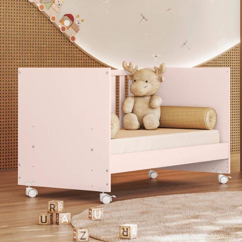 Berço Americano Doce Sonho Vira Mini Cama Com Grades E Rodinhas Rosa