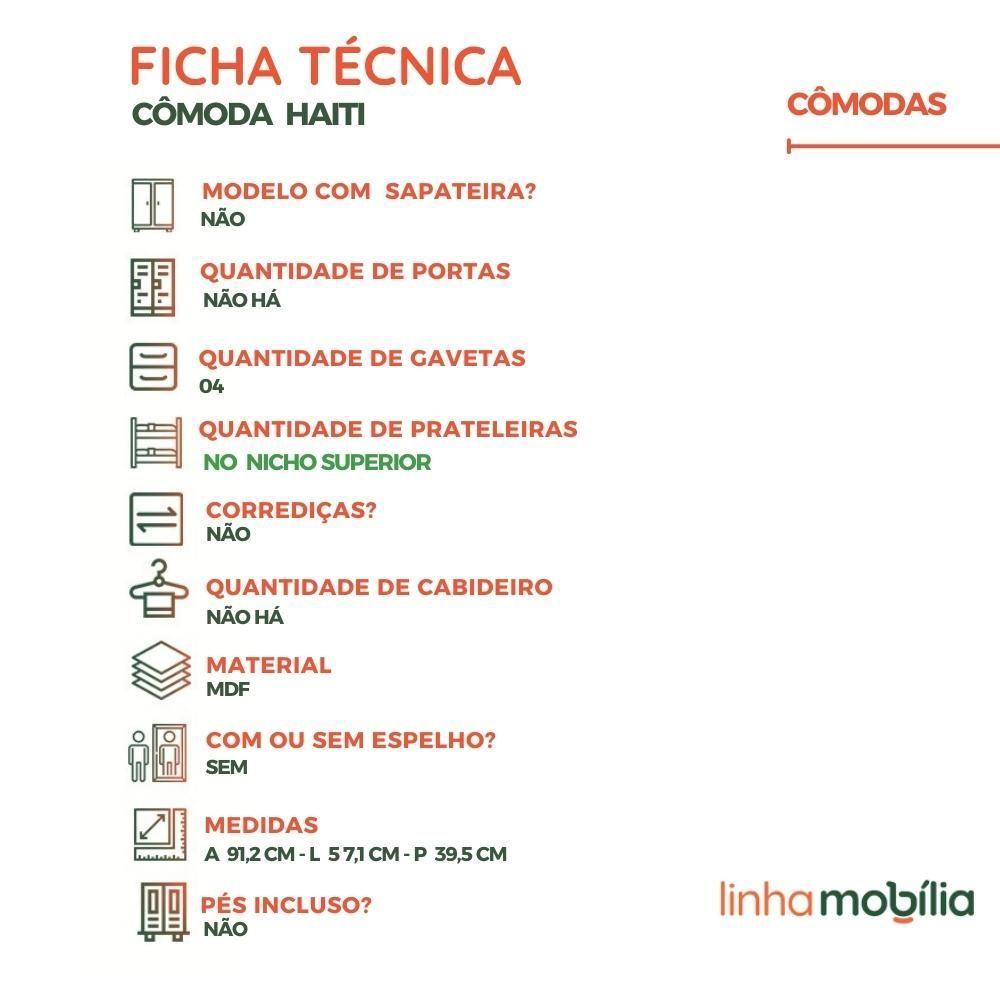 Cômoda Guiana 5 Gavetas 100% Mdf Linhamobília Branco BrancoIntroduzindo a Cômoda Guiana: a solução perfeita para organização e estilo em seu espaço. Feita inteiramente em MDF, esta peça combina durabilidade e beleza. Com 5 gavetas equipadas com corrediças telescópicas, manusear suas roupas será uma experiência suave e prática. Além disso, uma sapateira integrada e um nicho superior oferecem espaço adicional para guardar seus pertences com facilidade. Renove seu ambiente com a funcionalidade e elegância da Cômoda Guiana!Características:Material: 100% MDFAcabamento: Pintura UV (Ultravioleta)Portas: Sim, possui 1 portaGavetas: Sim, possui 5 gavetasCorrediças: TelescópicasPuxador: Em MDF revestidoSistema de montagem: Convencional (Parafusos, minifix e cavilhas)Prateleiras suportam até: 5 KgGavetas suportam até: 5 KgO produto suporta até: 60 Kg (distribuídos de forma adequada no mesmo)Dimensões do produto:Altura: 106,5 cmLargura: 95 cmProfundidade: 43 cmPeso: 41 KgRecomendações de uso e de limpeza:Evitar a exposição direta a luz solar e a umidade;Para limpeza, limpar com pano macio e seco, não utilizar qualquer outro tipo de produtos químicos;As imagens ambientadas são meramente ilustrativas e podem apresentar itens que não incorporam o produto em condomínios e/ou prédios serão feitas somente até a portaria;As cores do produto podem variar de acordo com o monitor, a iluminação do ambiente ou a sua percepção visual;Não nos responsabilizamos por serviços de montagem, os custos de desmontagens serão por conta do cliente;Garantia de : 03 Meses (90 dias)Material: MDF | Acabamento: Pintura UV (Ultravioleta) | Possui Portas: Sim | Quantidade de Portas: 01 | Possui Gavetas: Sim | Quantidade de Gavetas: 05 | Possui Prateleiras: Sim | Tipo de Corrediças: Telescópicas | Material do Puxador: MDF revestido | Necessita de Montagem: Sim | Sistema de montagem: Convencional (Parafusos, minifix e cavilhas) | Prateleiras suportam até: 5 Kg | O produto suporta até: 60 Kg (distribuídos de forma adequada no mesmo) | Altura: 106,5 cm | Largura: 95 cm | Profundidade: 43 cm | Peso: 41 Kg | Garantia: 03 meses | Tipo de Garantia: Garantia do Fabricante | Gavetas suportam até: 5 Kg | Tipo de Móvel: Cômoda | Modelo: Guiana | Marca: Linha Mobília | Quantidade de caixas de embalagem: 2 Cor: Branco
