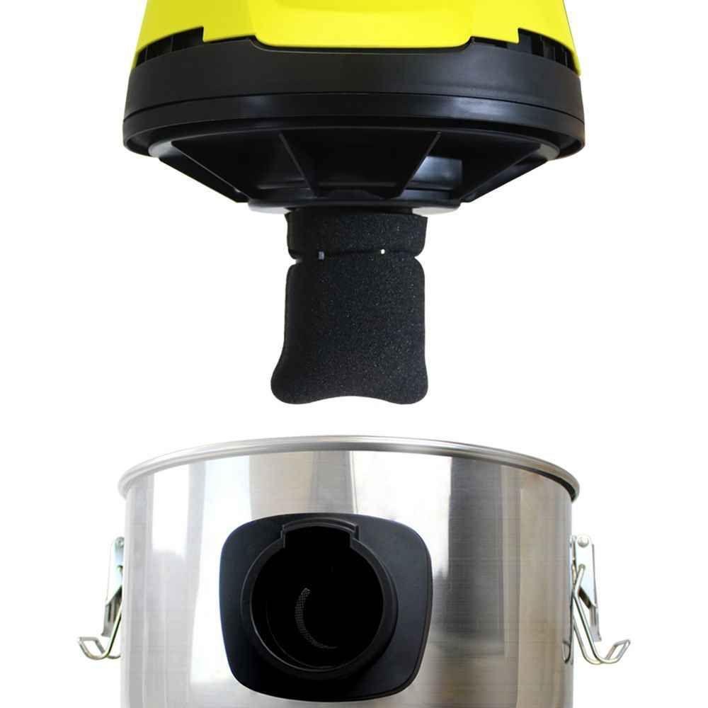 Aspirador De Pó E Líquido Kärcher NT 2.100 220VAspirador NT 2100 KärcherO Aspirador NT 2100 da Kärcher oferece limpeza completa com máxima praticidade e resistência. Ideal para uso ocasional, este modelo combina eficiência, versatilidade e praticidade, com um tanque resistente em aço inoxidável e diversos acessórios que garantem uma limpeza eficaz em todos os ambientes, incluindo cantos de difícil acesso.Características Principais:Porta acessórios na base e na parte superior, facilitando o armazenamento do equipamento e seus itens.Filtro de espuma que protege a turbina contra a entrada de partículas.Bocal de canto para limpeza em locais de difícil acesso.Filtro de tecido lavável e reutilizável, proporcionando economia e praticidade.Tanque de aço inoxidável que confere resistência e durabilidade ao equipamento.Mangueira com 2 metros de comprimento, oferecendo maior alcance durante o uso.Dados Técnicos:Tensão: 110V ou 220V (selecionar a voltagem desejada)Potência máxima: 1.600WVazão: 31 L/sSucção: 170 mbarNível de ruído: 90 dB(A)Reservatório: 20 LTamanho do cabo elétrico: 2 mPeso: 5,1 kgDimensões sem embalagem (CxLxA): 330 x 368 x 468 mmDimensões com embalagem (CxLxA): 390 x 400 x 525 mmTipo de Motor: Motor UniversalModelo: KarcherCertificação: Produto certificado compulsoriamente junto ao INMETRO pelo OCP ICBr - 0052Selo de benefício 01: Filtro lavávelSelo de benefício 02: Porta acessóriosSelo de benefício 03: Cabo de 2mTipo de Uso: Uso ocasionalCor: AmareloAcessórios Inclusos:1 Mangueira flexível de 2 metros2 Tubos prolongadores1 Filtro de espuma1 Bocal de piso1 Bocal de canto1 Filtro de tecidoDimensões do Produto:Peso: 6,5 kgAltura: 38,6 cmLargura: 51,7 cmComprimento: 39,3 cmCom o Aspirador NT 2100 Kärcher, você garante uma limpeza eficiente e prática para qualquer ambiente, com um design robusto e fácil de usar.
