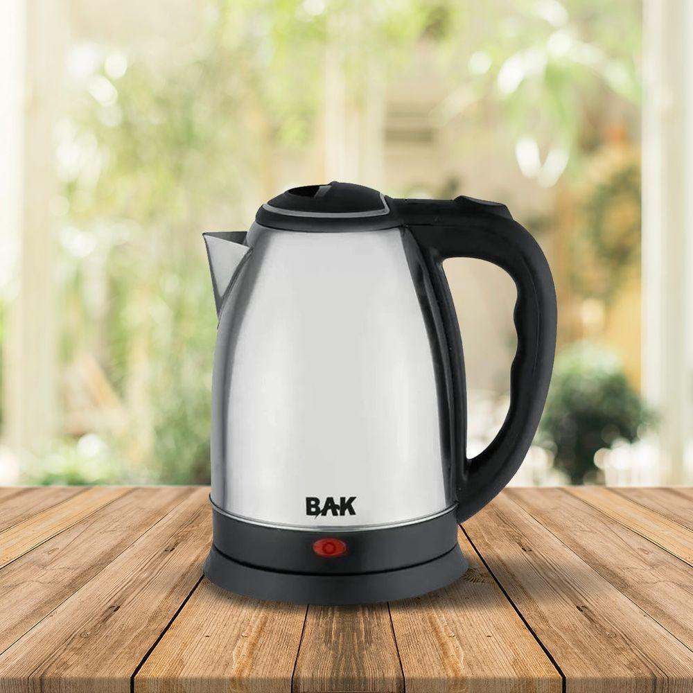 Chaleira Elétrica BAK 1100W Inox 1,8 Litros 110VChaleira Elétrica BAK Inox 1,8 Litros 127V 1100W - BAK-110-INOXPA Chaleira Elétrica BAK Inox foi desenvolvida para oferecer praticidade e eficiência no preparo de bebidas quentes. Com capacidade de 1,8 litros, potência de 1100W e design moderno em aço inoxidável, é ideal para uso doméstico ou no escritório.Destaques do Produto:Capacidade de 1,8 litros, ideal para o preparo de chás, cafés e outras bebidas.Potência de 1100W, que garante aquecimento rápido da água.Desligamento automático ao ferver ou na ausência de água, proporcionando segurança.Base giratória 360° com conexão sem fio, facilitando o manuseio.Tampa com trava de segurança e alça ergonômica.Acabamento em aço inoxidável, durável e fácil de limpar.Indicador de nível de água e botão liga/desliga com luz indicadora.Especificações Técnicas:Modelo: BAK-110-INOXPVoltagem: 127VPotência: 1100WCapacidade: 1,8 litrosMaterial: Aço inoxidável (corpo e tampa) e polipropileno (base)Peso aproximado: 0,55 kg (líquido) / 0,9 kg (bruto)Dimensões aproximadas: 23,5 cm (altura) x 19,5 cm (largura)Conteúdo da Embalagem:1 Chaleira Elétrica BAK Inox1 Base elétrica giratóriaManual de instruçõesIndicação de Uso:Ideal para o preparo de água quente para cafés, chás, chimarrão, sopas instantâneas, entre outras bebidas e alimentos que exigem água fervente com rapidez e segurança.Chaleira Elétrica BAK Inox 1,8 Litros 127V 1100W - BAK-110-INOXPA Chaleira Elétrica BAK Inox foi desenvolvida para oferecer praticidade e eficiência no preparo de bebidas quentes. Com capacidade de 1,8 litros, potência de 1100W e design moderno em aço inoxidável, é ideal para uso doméstico ou no escritório.Destaques do Produto:Capacidade de 1,8 litros, ideal para o preparo de chás, cafés e outras bebidas.Potência de 1100W, que garante aquecimento rápido da água.Desligamento automático ao ferver ou na ausência de água, proporcionando segurança.Base giratória 360° com conexão sem fio, facilitando o manuseio.Tampa com trava de segurança e alça ergonômica.Acabamento em aço inoxidável, durável e fácil de limpar.Indicador de nível de água e botão liga/desliga com luz indicadora.Especificações Técnicas:Modelo: BAK-110-INOXPVoltagem: 127VPotência: 1100WCapacidade: 1,8 litrosMaterial: Aço inoxidável (corpo e tampa) e polipropileno (base)Peso aproximado: 0,55 kg (líquido) / 0,9 kg (bruto)Dimensões aproximadas: 23,5 cm (altura) x 19,5 cm (largura)Conteúdo da Embalagem:1 Chaleira Elétrica BAK Inox1 Base elétrica giratóriaManual de instruçõesIndicação de Uso:Ideal para o preparo de água quente para cafés, chás, chimarrão, sopas instantâneas, entre outras bebidas e alimentos que exigem água fervente com rapidez e segurança.