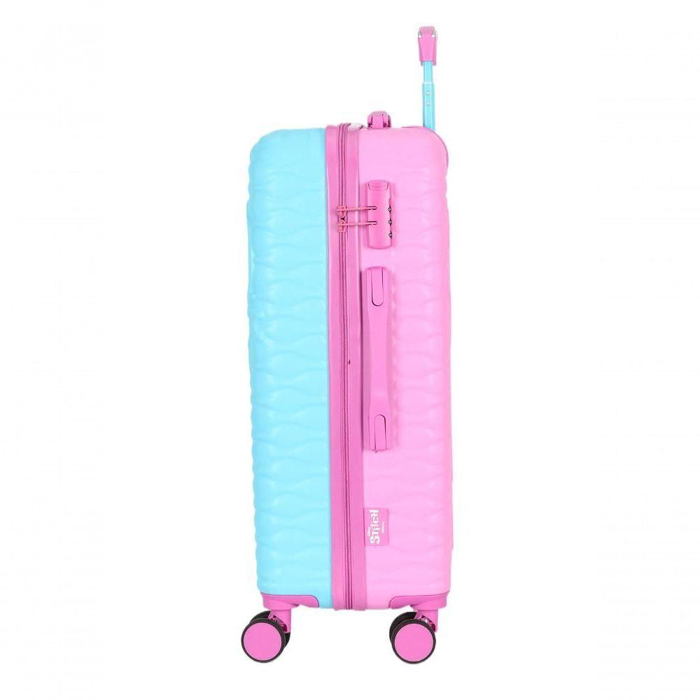 Mala De Viagem Media Pink - M PinkMala Dupla Face Stitch & Angel – Duas Estampas, Dupla Diversão!A Mala Dupla Face Stitch & Angel chegou para transformar suas viagens, passeios e idas à escola com muito estilo e praticidade. Com um design inovador, ela traz Stitch em azul de um lado e Angel em rosa do outro, permitindo que você escolha qual personagem exibir a cada momento. É como ter duas malas em uma só!Fabricada em material resistente e equipada com rodas duplas de giro 360°, ela garante fácil mobilidade, conforto e segurança, além de detalhes exclusivos como zíper personalizado, logo em metal resinado e cadeado externo com segredo.Destaques e Características Modelo: MF10519SC Dupla Face: De um lado Stitch, do outro Angel Bolso interno com zíper, ideal para organização Forro em poliéster personalizado, resistente e durável Alça retrátil confortável, facilitando o transporte Rodas removíveis duplas com giro 360°, garantindo manobras suaves Cadeado externo com segredo, para mais segurança durante a viagem Abertura lateral com zíper personalizado Divisória interna com fechamento em zíper, para melhor organização Material resistente em ABS, garantindo maior durabilidade Dimensões: Pequena: 56 x 35 x 22 / Média: 66 x 43 x 26 cm- pequena de bordo – peso: 1,5kg – suporta 10kg- média – peso: 2,5kg – suporta 23kgCuidados e Conservação Sempre utilize as quatro rodas para maior durabilidade Não exceda o peso recomendado Evite o uso de produtos químicos ou escovas abrasivas na limpeza Mantenha longe de objetos cortantesModo de LimpezaPara conservar sua mala sempre impecável, limpe apenas com água e sabão neutro utilizando um pano macio. Evite esfregar para preservar a estampa e o brilho do material.Escolha seu lado favorito e leve a magia de Stitch & Angel para onde for! Origem: Importados | Material: ABS | Coleção: Stitch | Modelo: MF10519SC-24 | Comprimento real: 26 | Peso real: 2.5 | Altura real: 66 | Largura real: 43 | Gênero: Feminino Cor: Pink