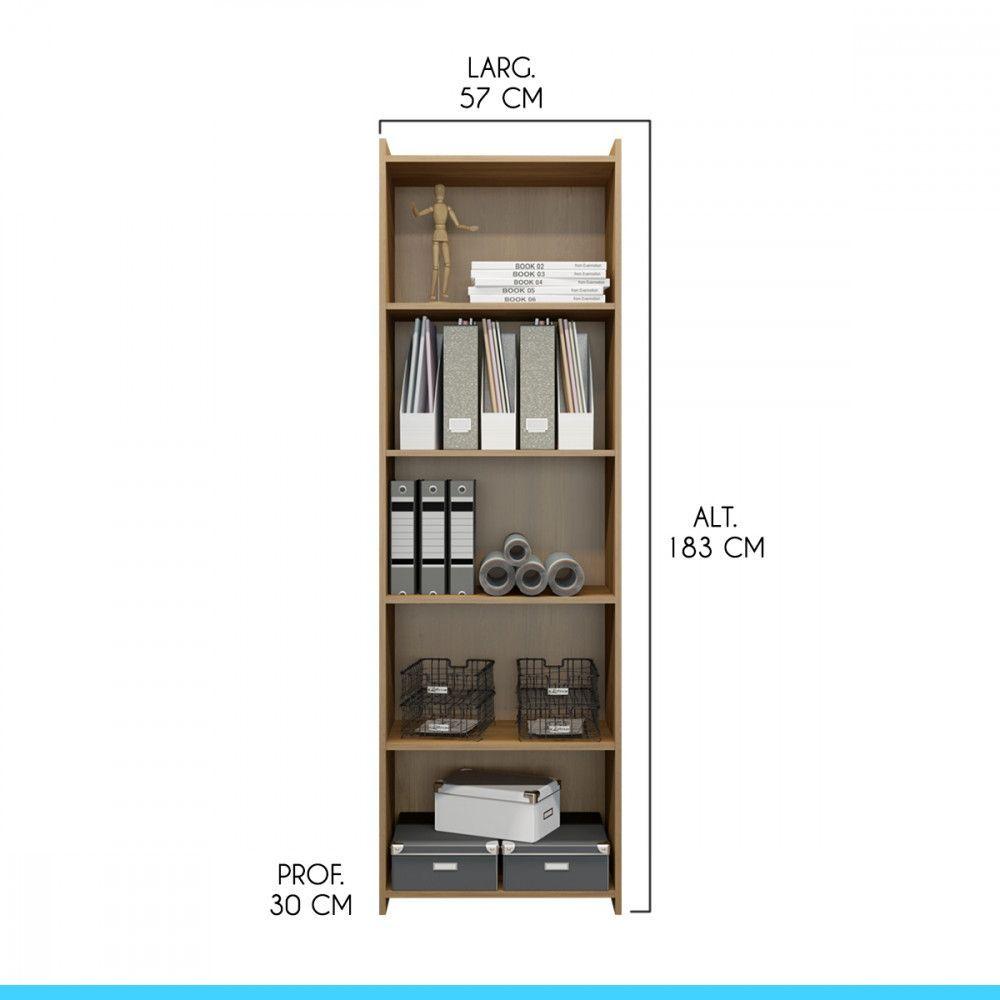 Kit 3 Estantes Organizador Multiuso 57x183cm Mdp Menu Móveis CarvalhoA Estante Prateleira e um movel util e versatil, perfeito para complementar o seu ambiente. Possui quatro prateleiras para voce organizar seus livros e decoracoes, alem de poder utilizar em diversos comodos como quarto, sala, escritorio. A Estante e produzida com materiais de excelente qualidade, garantindo a durabilidade e vida util. O melhor em moveis no design atual aliando conforto, qualidade e otimos precos!Caracteristicas: Produzido em MDP de 15 mm Acabamento UV Nichos com Larg. 54 x Alt. 33,2 cm Prateleiras Suporta 5 Kg Itens Inclusos: 03 Estantes Organizador Multiuso 57x183cm MDP Dimensoes: Altura: 183 cm Largura: 57 cm Profundidade: 30 cm Peso: 25 kg Garantia de 03 Meses para defeitos de fabricacao conforme Codigo de Defesa do Consumidor. Observacoes: ATENCAO: Nao trabalhamos e nao nos responsabilizamos pela montagem do movel. Antes da montagem conferir se o produto esta de acordo com o que comprou, produto montado e danificado pela montagem nao sera aceito troca. Montagem e instalacao por conta do comprador. As imagens ambientadas sao meramente ilustrativas e podem apresentar itens que nao compoe o produto. As cores do produto podem variar de acordo com o monitor, a iluminacao do ambiente ou sua percepcao visual. Limpeza: Deve ser feita com pano macio e seco ou levemente umedecido com agua e sabao neutro. Nao devem ser utilizados abrasivos como palha de aco e objetos cortantes.