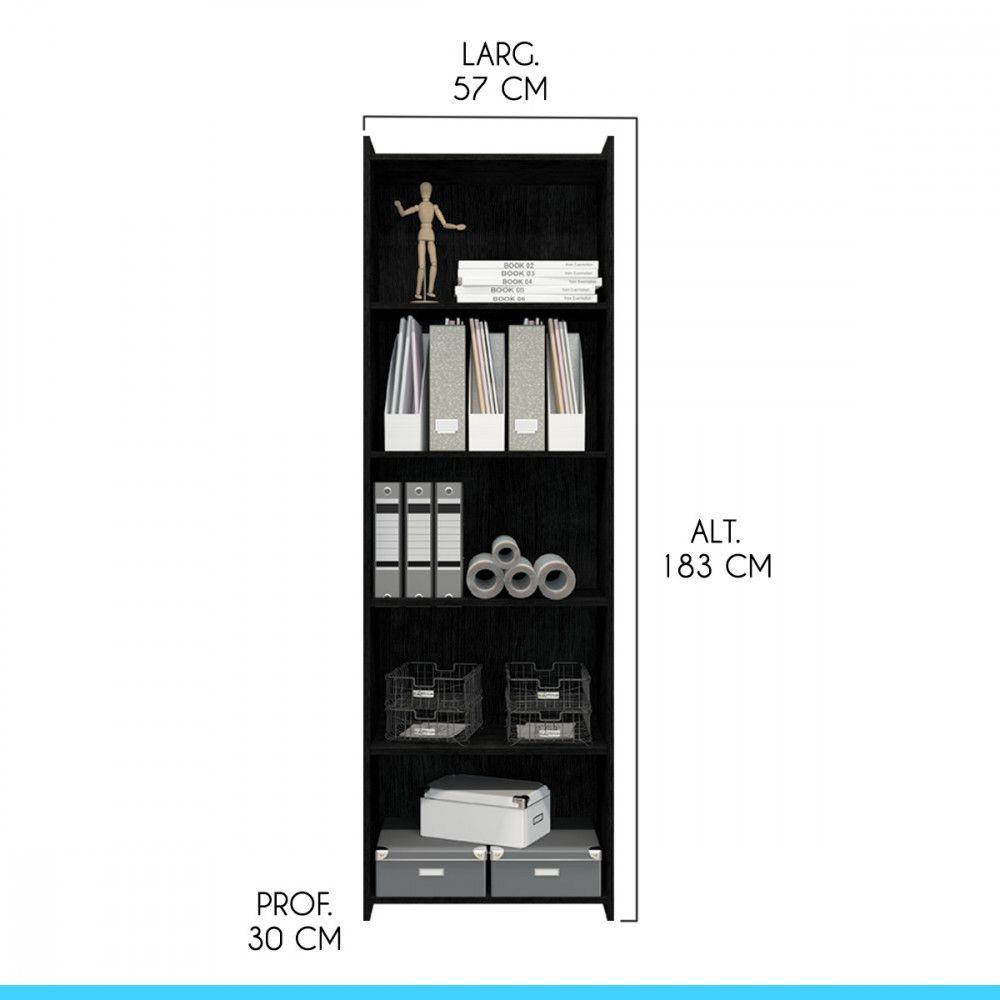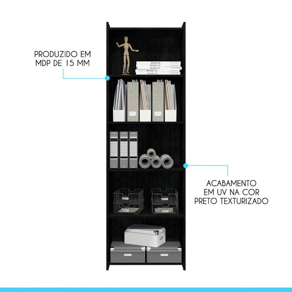 Kit 3 Estantes Para Escritório 57x183 Cm Mdp Menu Móveis PretoA Estante Prateleira e um movel util e versatil, perfeito para complementar o seu ambiente. Possui quatro prateleiras para voce organizar seus livros e decoracoes, alem de poder utilizar em diversos comodos como quarto, sala, escritorio. A Estante e produzida com materiais de excelente qualidade, garantindo a durabilidade e vida util. O melhor em moveis no design atual aliando conforto, qualidade e otimos precos, so na Menu Moveis!Caracteristicas: Produzido em MDP de 15 mm Acabamento UV Texturizado Nichos com Larg. 54 x Alt. 33,2 cm Prateleiras Suporta 5 Kg Kit Composto por TRES Estantes Itens Inclusos: 03 Estantes Multiuso para Escritorio 57x183 Cm MDP Dimensoes: Altura: 183 cm Largura: 57 cm Profundidade: 30 cm Peso: 25 kg Garantia de 03 Meses para defeitos de fabricacao conforme Codigo de Defesa do Consumidor. Observacoes: ATENCAO: Nao trabalhamos e nao nos responsabilizamos pela montagem do movel. Antes da montagem conferir se o produto esta de acordo com o que comprou, produto montado e danificado pela montagem nao sera aceito troca. Montagem e instalacao por conta do comprador. As imagens ambientadas sao meramente ilustrativas e podem apresentar itens que nao compoe o produto. As cores do produto podem variar de acordo com o monitor, a iluminacao do ambiente ou sua percepcao visual. Limpeza: Deve ser feita com pano macio e seco ou levemente umedecido com agua e sabao neutro. Nao devem ser utilizados abrasivos como palha de aco e objetos cortantes.
