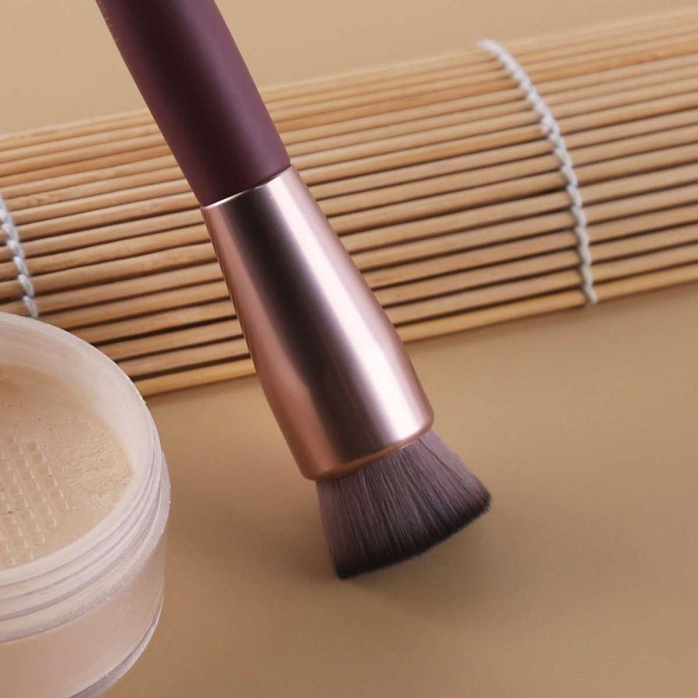 Pincel Kabuki Redondo Topo Reto Marsala 12504 | Miss Frandy | Aplicação UniformeO Pincel Kabuki da Linha Marsala da Miss Frandy combina funcionalidade com elegância, ideal para uma aplicação de base suave e uniforme. Com cerdas sintéticas densas e formato achatado, permite cobertura ajustável e alcança todos os contornos do rosto com facilidade. O cabo marsala robusto oferece manuseio confortável, e as cerdas hipoalergênicas garantem uso econômico e higiênico. Este pincel é um investimento duradouro para um acabamento perfeito de maquiagem.