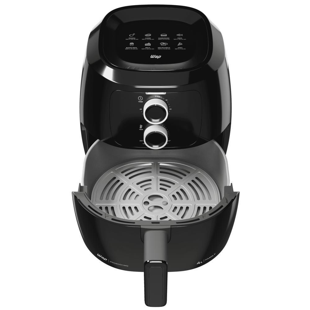 Fritadeira Elétrica WAP Family 4L WAFF2-P 110VMais sabor, crocância e praticidade para você inovar nas receitas!Com a capacidade de 4 litros, a Fritadeira Elétrica WAP Family tem potência e espaço para transformar cada aventura na cozinha em descobertas deliciosas. Parceira em tamanho família, ela despertará sua criatividade no preparo de refeições saborosas, mais saudável e prática em grandes porções.A preocupação com pontos frios ou partes malcozidas ficou no passado! Com a tecnologia de circulação de ar quente em 360°, a Air Fryer Family 4L é a chave para receitas irresistíveis. Ela envolve os alimentos em todos os ângulos, garantindo resultados crocantes por fora e macios por dentro.O design quadrado do cesto da air fryer preta tem lugar e estilo de sobra para suas receitas. O espaço extra garante que a cocção de cada pedaço seja uniforme e rápida. Além disso, a grelha removível permite uma circulação eficiente do ar para realçar o sabor das refeições.Para manter sua cozinha sempre impecável, o revestimento antiaderente torna a limpeza uma tarefa simples e eficaz. Impedindo que os alimentos e a gordura grudem na grelha e no cesto, ele ainda possibilita a higienização dos acessórios na máquina de lavar louças.A potência de 1500W garante resultados de dar Água na boca aos seus pratos. Ganhe mais sabor, enquanto economiza tempo, mesmo no preparo de grandes porções. Domine o ponto de cada receita como os chefs, ao ajustar a temperatura da Fritadeira Elétrica WAP Family, que tem a amplitude de 80°C a 200°C.Descubra uma maneira mais saudável e prática de cozinhar com a air fryer 4L. Frite, asse, desidrate ou toste seus alimentos favoritos sem a necessidade de óleo ou manteiga. O timer de 60 minutos assegura que suas receitas estejam prontas no tempo certo, enquanto o aviso sonoro indica o término do preparo.Liberte sua imaginação e crie receitas incríveis para toda a família. A Fritadeira Elétrica WAP Family 4L é a escolha perfeita para refeições saudáveis, práticas e cheias de sabor.WAP | Deixa tudo mais fácil.Cor: Preta Potência: 1500W Ação do produto: Assar, cozinhar, gratinar e fritar seus alimentos Aviso sonoro: Sim Dimensões do produto (C x L x A): 32,4 x 27,3 x 29,7 cm Tipo de tomada (amperes): 20A (110V) 10A (220V) Comprimento do cabo elétrico: 0,8m Luz indicadora de funcionamento: Sim Material: Polímeros e Metais Timer: 0-60 min Acessórios: Grelha removível Manual de instruções: Clique aqui para Revestimento antiaderente: Sim Capacidade total: 4L Dimensões da caixa (C x L x A): 30,6 x 30,x6 x 33 cm Frequência: 60Hz Peso líquido: 3,3 kg Código EAN: 7899831331796 (110V) / 7899831331802 (220V) Código WAP: FW010116 (110V) / FW010117 (220V) Desligamento automático:: Sim Voltagem: 110V ou 220V (Escolher no momento da compra) Tipos de alimentos que comporta: Prepara petiscos, massas, carnes, pastéis, pão de queijo, churros, peixes, vegetais entre outros. Temperatura: 80-200 °C Peso bruto: 3,7 kg