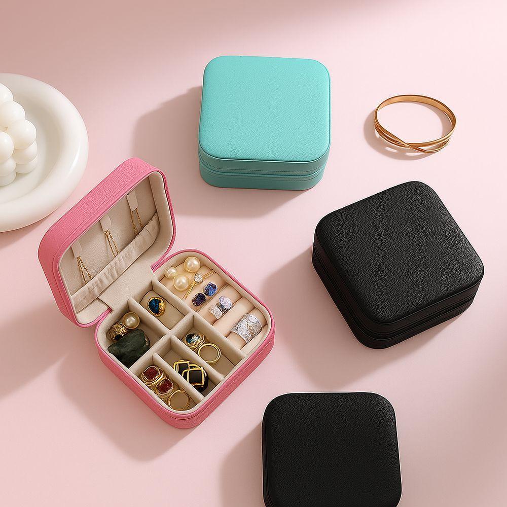 Mini Porta-jóias Em Couro Sintético Rosa Claro – Elegância E Praticidade Para Viagens E Uso Diário