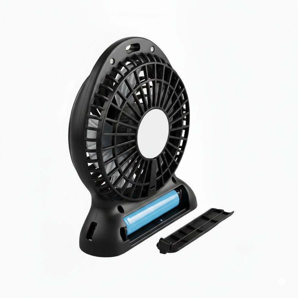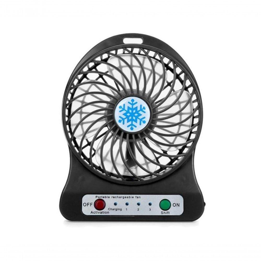 Mini Ventilador Portátil Recarregável Com 3 Velocidades – Frescor Compacto Para Qualquer Lugar PretoMini Ventilador Portátil Recarregável com 3 Velocidades – Frescor Compacto para Qualquer LugarEncare o calor com muito mais conforto usando o mini ventilador portátil recarregável, ideal para trabalho, estudos, transporte público e passeios ao ar livre. Compacto, leve e fácil de levar, ele oferece ventilação ajustável em 3 níveis e ainda conta com lanterna integrada, trazendo praticidade extra para o dia a dia e situações de baixa iluminação.Destaques do ProdutoMini ventilador portátil recarregável, compacto e fácil de transportar3 níveis de intensidade: fraco, médio e forteFunciona conectado diretamente ao USB ou à fonte do celularBateria recarregável Li-ion 18650 com autonomia de até 3 horasPotência de 4,5W com eficiência energéticaMaterial em plástico resistente para maior durabilidadeIdeal para uso em casa, trabalho, transporte e atividades externasBenefícios para o Seu Dia a DiaMais frescor e conforto em qualquer lugar, sem depender de tomada fixaAjuste de velocidade para se adaptar ao seu nível de calorÓtimo para levar na bolsa, mochila ou até no bolsoAjuda a enfrentar dias quentes com praticidade e levezaEspecificações TécnicasIntensidades: Fraco, médio e fortePorta USB: Compatível com carregadores 5VBateria: Li-ion 18650 3,7VAutonomia: Até 3 horas de uso contínuoPotência: 4,5WMaterial: Plástico de alta resistênciaTensão de entrada: 5VCorrente de entrada: 0,5 a 1ATensão de saída: 5V a 9VDimensões Aproximadas do Produto14 cm x 10 cm x 4 cmPeso: 150 gConteúdo da Embalagem01 Ventilador portátil01 Cabo USB para recarga01 Bateria recarregávelObservações ImportantesGaranta o seu agora e tenha mais frescor, praticidade e conforto na palma da sua mão onde estiver!INMETRO OCP 0040 – Registro nº 006950/2021