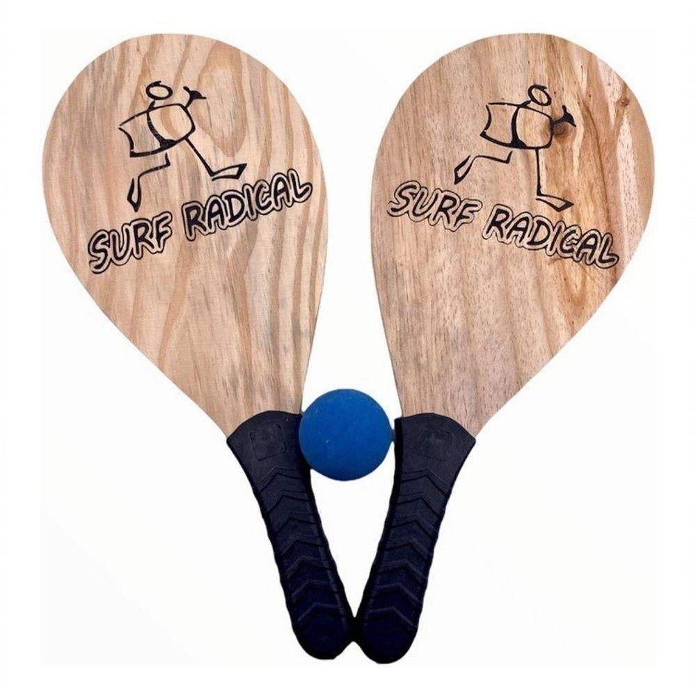 Raquete Frescobol De Madeira Com Bolinha Surf Radical