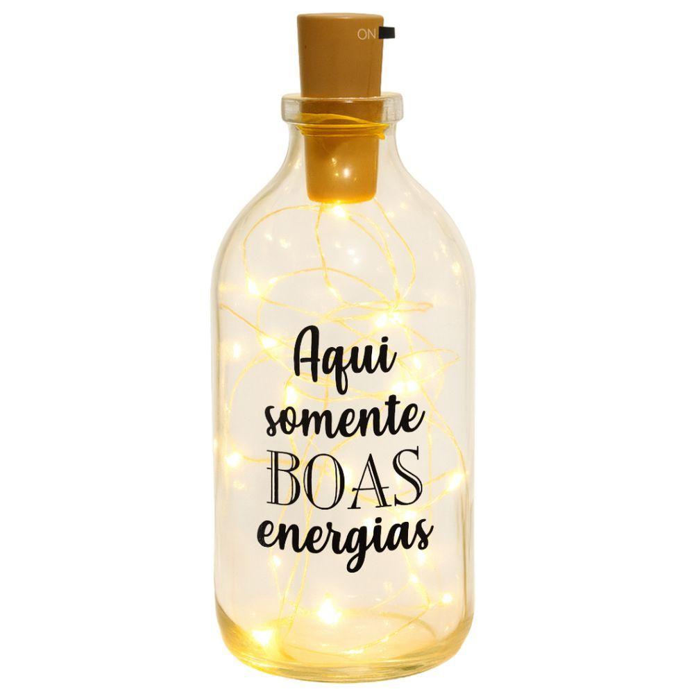 Garrafa Paris 500ml Led Aqui Somente Boas EnergiasGarrafa Vidro Decorativa Com Luz Led Presente Criativo Abajur Iluminação Ambiente Mesa Só Art'sLeve mais charme e aconchego para seus ambientes com esta elegante garrafa de vidro decorativa com luz LED, ideal para ser usada como abajur ou peça de destaque na decoração da sua casa. Com um design clean e moderno, ela transforma qualquer espaço, seja mesa de centro, estante, cabeceira ou até mesmo uma mesa posta. Sua iluminação suave e decorativa cria uma atmosfera acolhedora, perfeita para momentos de relaxamento ou encontros especiais. Um presente criativo que combina funcionalidade e beleza, ideal para surpreender em qualquer ocasião.Características do produto- Dimensões da garrafa: 7,5 cm de diâmetro por 20 cm de altura.- Capacidade: 500 ml (não indicada para uso com líquidos, item decorativo).- Material: Vidro de alta qualidade, resistente e com acabamento transparente.- Iluminação: Luz LED interna com acendimento simples, proporcionando iluminação suave e agradável ao ambiente.- Fonte de energia: Funcionamento a pilha (pilhas não inclusas), facilitando o uso sem necessidade de tomadas próximas.- Utilização: Ideal como abajur decorativo, luz ambiente ou peça central em decorações temáticas e mesas.- Estilo: Versátil, combina com decorações modernas, rústicas, minimalistas e criativas.- Produto com , e garantia de .- Produto Marca Só Art'ê vai receber em sua casa1 Garrafa de Vidro Decorativa com Luz LED integrada.Embalagem segura para e proteção do simples com instruções de uso e cuidados.Produto Marca Só Art's.- Pode ser utilizada em diversos ambientes como sala, quarto, varanda ou mesa de jantar, proporcionando iluminação decorativa e aconchegante.- Presente ideal para datas especiais como aniversários, Natal, amigo secreto e até lembrança de casamento, agregando valor emocional e utilidade.- Não requer fios ou tomadas, já que funciona à pilha, permitindo liberdade total na escolha do onde será utilizada.- Fácil de ligar e desligar, com sistema intuitivo de acendimento, ideal para qualquer idade e uso prático no dia a dia.- Material durável e acabamento refinado garantem que o produto seja uma peça de longa duração na decoração de qualquer ambiente.- Transforme qualquer espaço com charme e luz ? surpreenda com elegância e afeto.