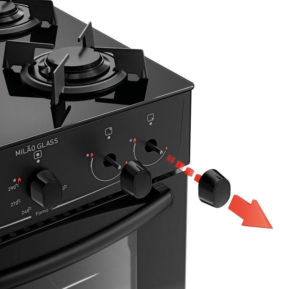 Fogão 4 Bocas Atlas Automático Mesa De Vidro Milão Glass Preto Bivolt