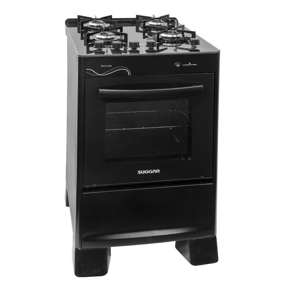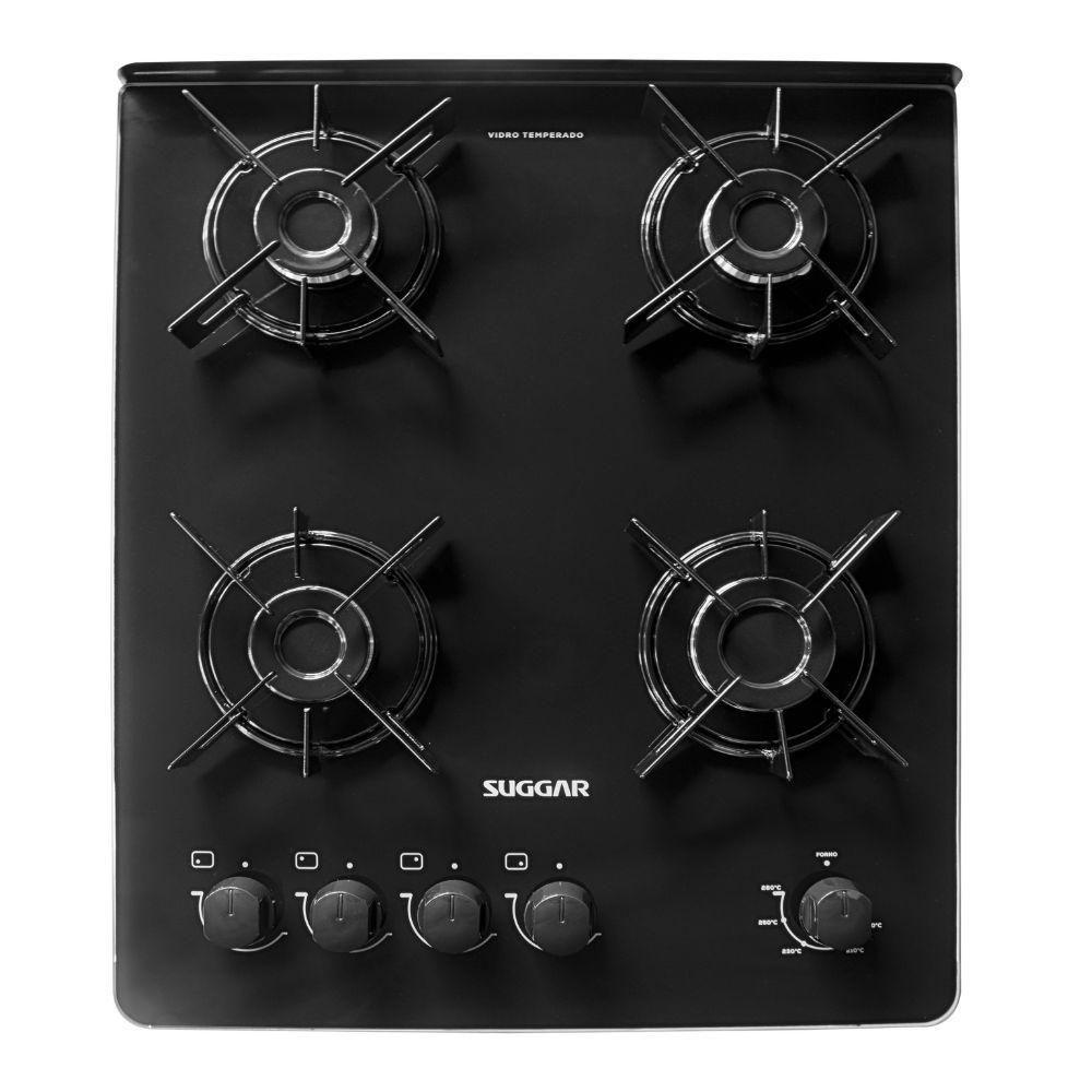 Fogão 4 Bocas Suggar Automático Mesa De Vidro Neo Glass Preto Bivolt