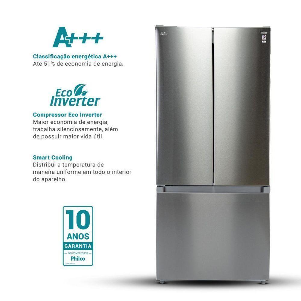 Geladeira Philco Eco Inverter Frost Free French Door 523L PRF53A Inox 110V