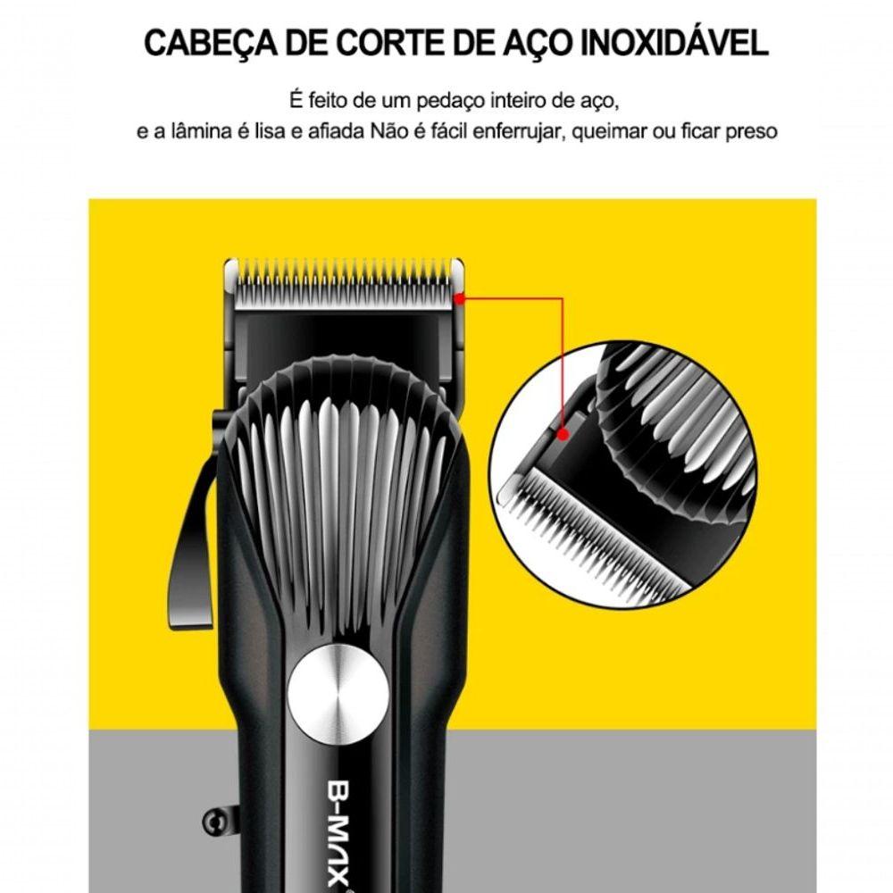 Maquina Cortar Cabelos Sem Fio Bmax 4 Pentes Visor Lcd Bivolt Preto