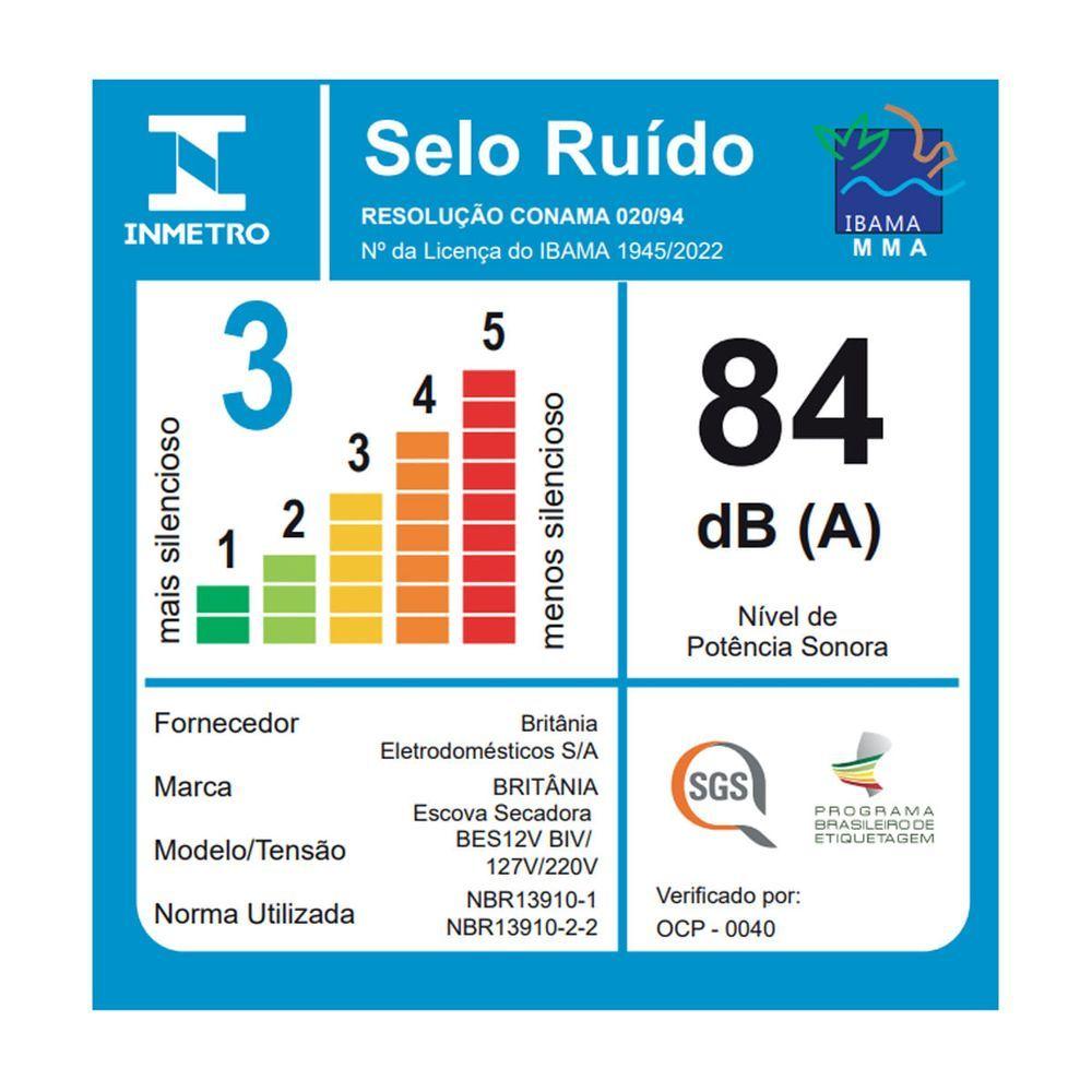 Escova Secadora Britânia Soft 4 em 1 1300W Bivolt BES12 BivoltA Escova Secadora Britânia Soft BES12 vermelha é a revolução em cuidados para seus cabelos! Ela é 4 em 1, seca, alisa, modela e dá volume. Sua alta performance é a combinação de 1300W de potência com várias tecnologias que proporcionam um liso perfeito sem danificar os fios.Essa Escova Secadora Britânia conta com a exclusiva tecnologia de Luz infravermelha, a Luz Infrared que evita danos ou ressecamento excessivo e sela as cutículas capilares. Também conta com a tecnologia de cerdas Natural Care, mais resistentes ao calor e com textura parecida com a do cabelo, perfeitas pra realçar o brilho dos fios, reduzindo o frizz. A Escova Secadora BES12 ainda tem revestimento em nanocerâmica que evita o ressecamento e atrito, protegendo os fios do calor e proporcionando brilho intenso. Já os Íons Tourmaline preservam a umidade natural dos fios e também eliminando o frizz. E combinando as 3 temperaturas e 2 velocidades você a deixa do modo ideal para seus cabelos e seus cabelos do jeito que mais gosta!Tudo isso em uma escova Bivolt, ideal para você levar para qualquer lugar! - Cerdas de Javali- Luz infravermelha- Bivolt manual- 1300W em 220V e 1200W em 127V- 3 temperaturas disponíveis- 2 velocidades- Cordão giratório- Cordão elétrico com 1,80M- Libera tourmaline íons- Tubo com revestimento em cerâmica.Especificações Técnicas:Marca: BritâniaTipo: Escova SecadoraPotência (W): 1300WGarantia (Dias): 360Modelo: Soft BES12Estado: NovoAltura do produto: 8 cmLargura do produto: 39,5 cmComprimento do produto: 11 cmPeso do produto: 0,526 kgAltura com embalagem: 9 cmLargura com embalagem: 40,5 cmComprimento com embalagem: 11,2 cmPeso com embalagem: 0,646 kgObservação: Somente faturamos para o nosso consumidor final, ou seja, não faturamos pedidos para CNPJ por este portal de vendas;